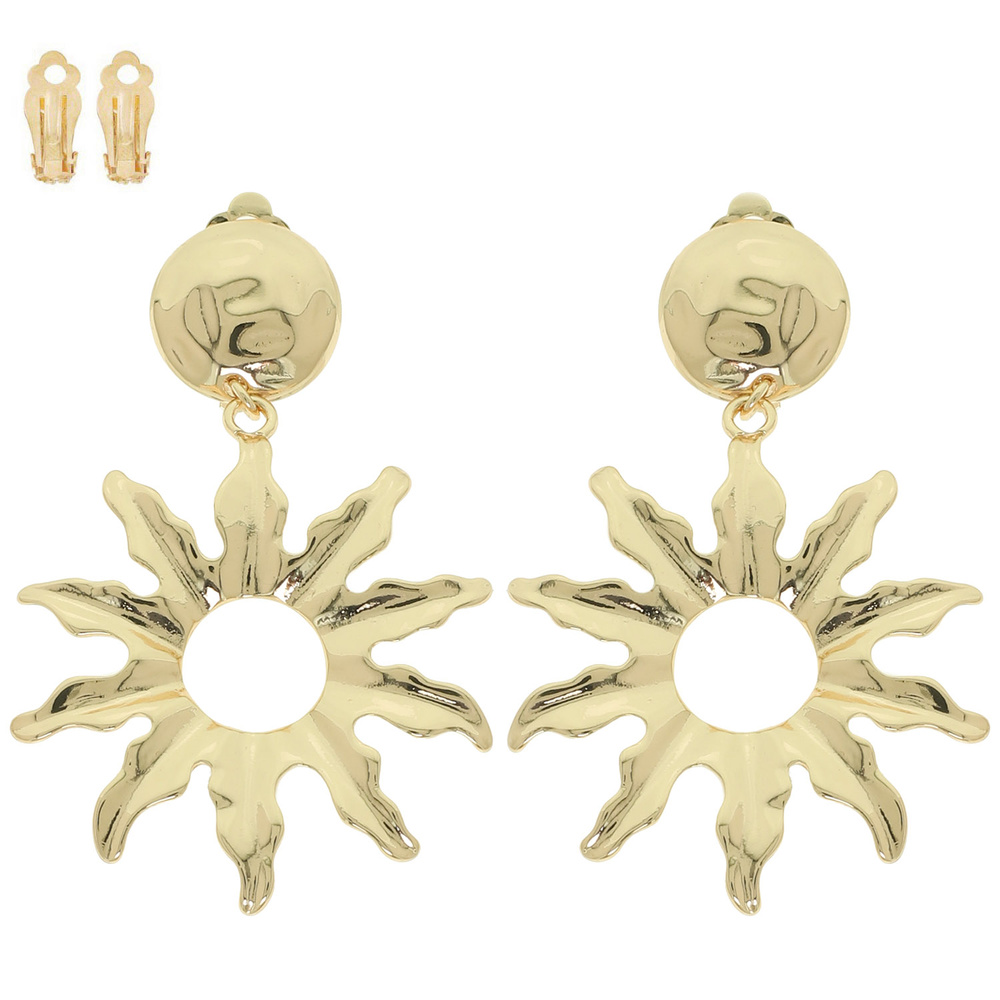 CLIP ON EARRINGS WITH METAL SUNBURST CUTOUT DROP DESIGN