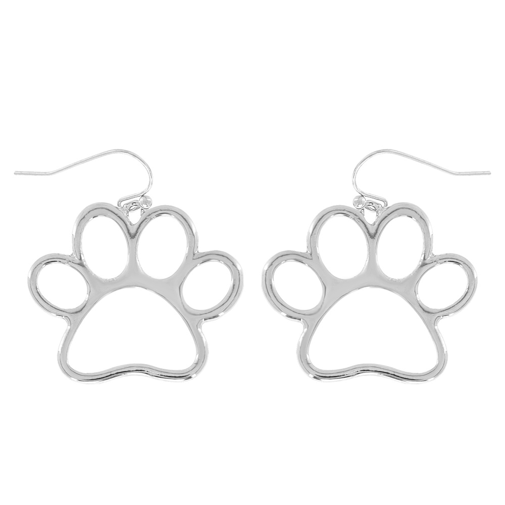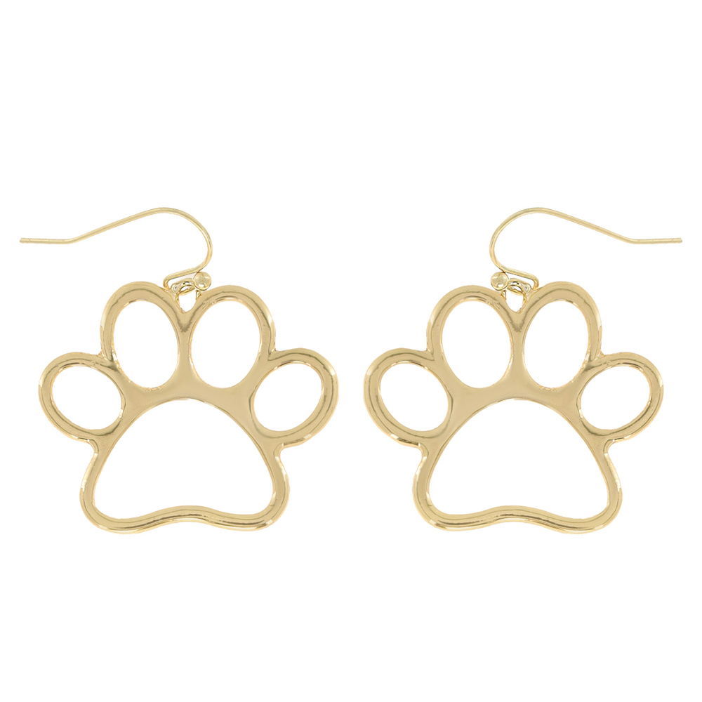 PAW CUTOUT DANGLE AND DROP HOOK EARRINGS IN GOLD AND SILVER TONE METAL