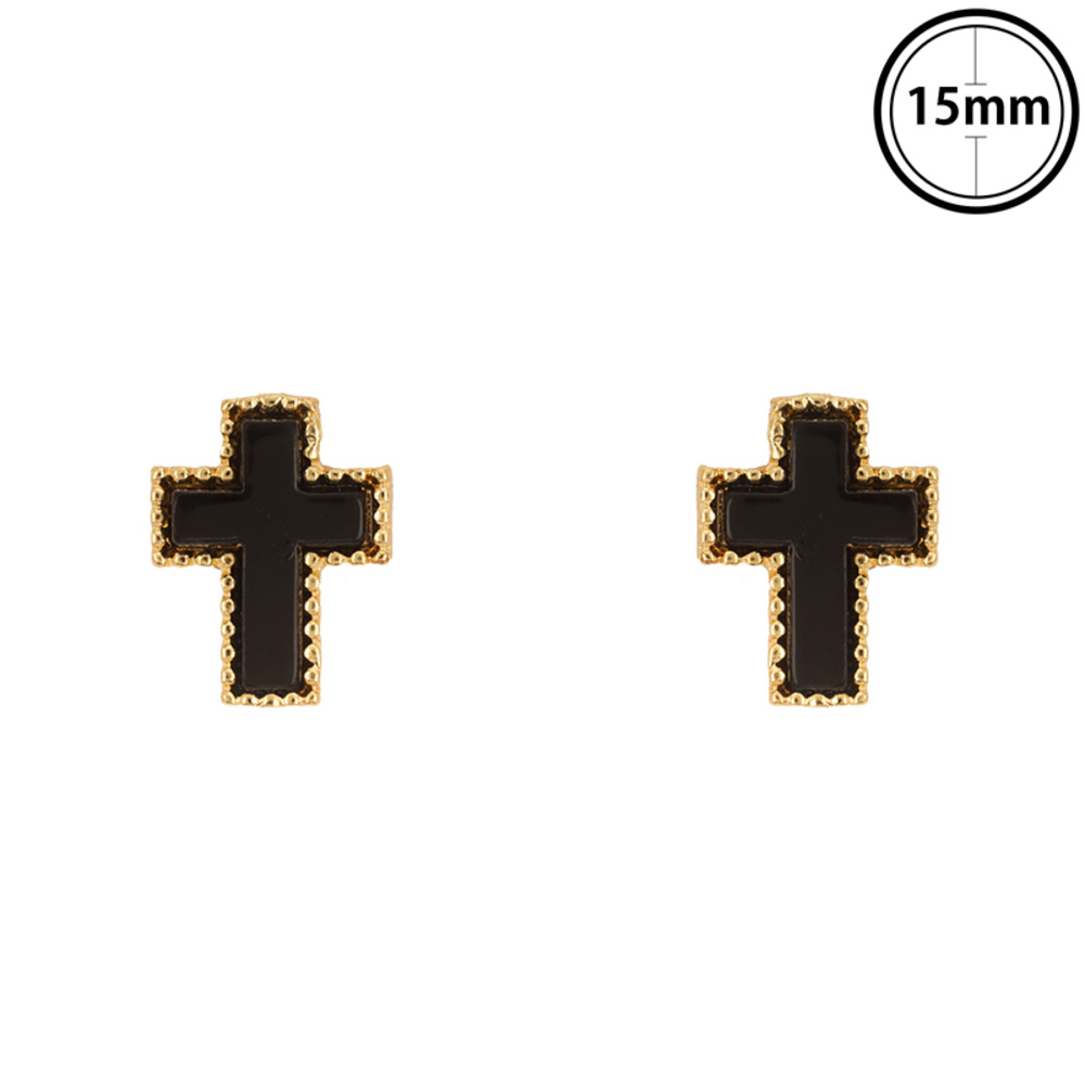 BLACK PEARLESCENT ENAMEL INLAY LATIN CROSS POST EARRINGS