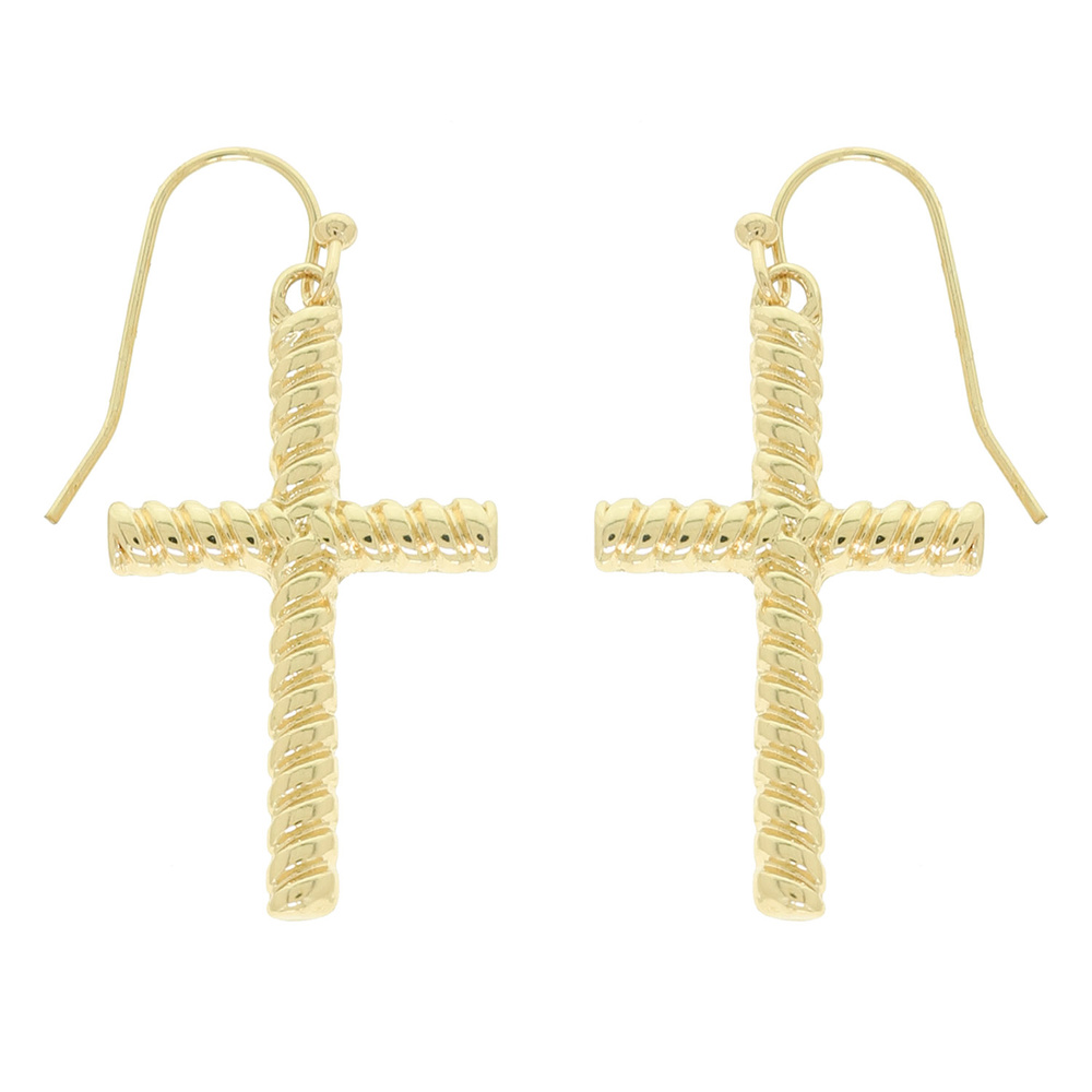 TEXTURED POLISHED CROSS EARRINGS WITH FRENCH HOOK BACKINGS IN GOLD TONE METAL