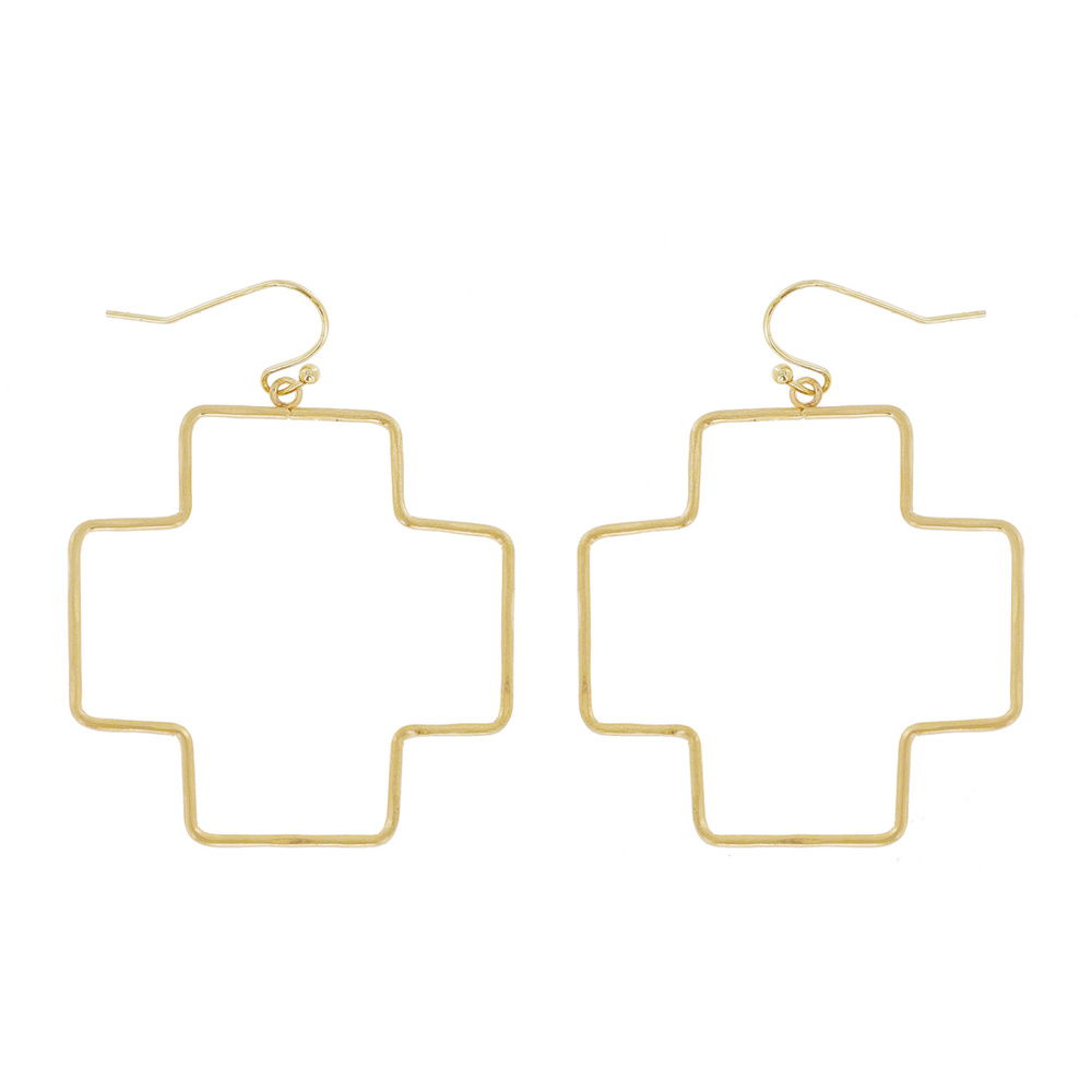 BOHEMIAN HAMMERED METAL OPEN CROSS DANGLE AND DROP HOOK EARRINGS