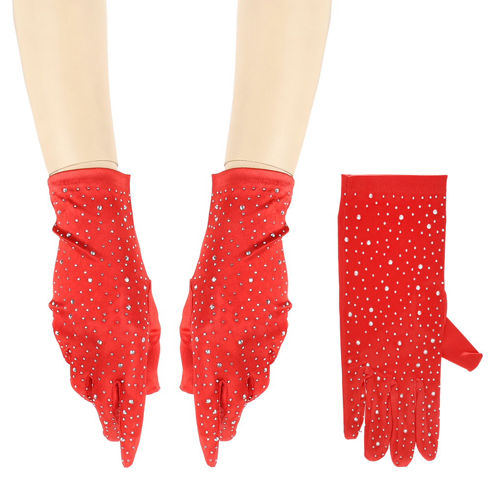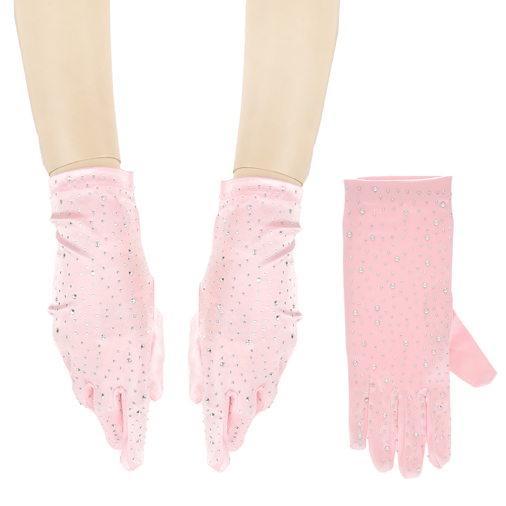 ELEGANT PARTY CRYSTAL RHINESTONE STUDDED SPARKLE SATIN LONG ELBOW LENGTH OPERA GLOVES