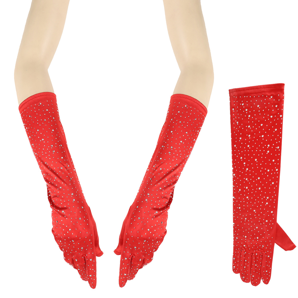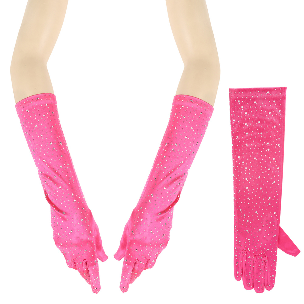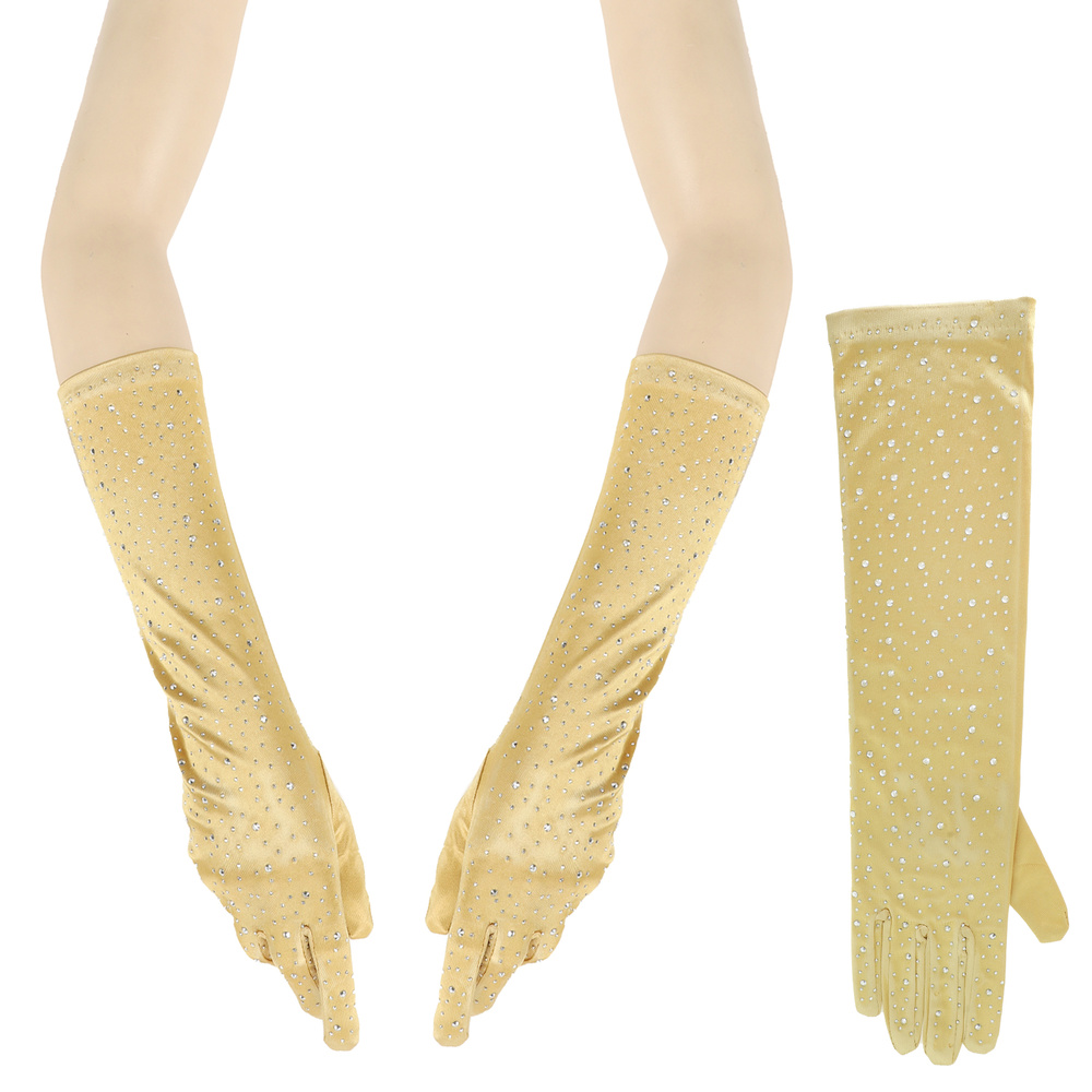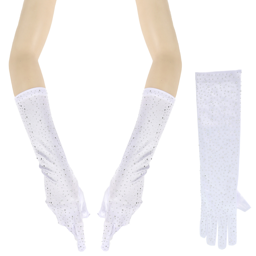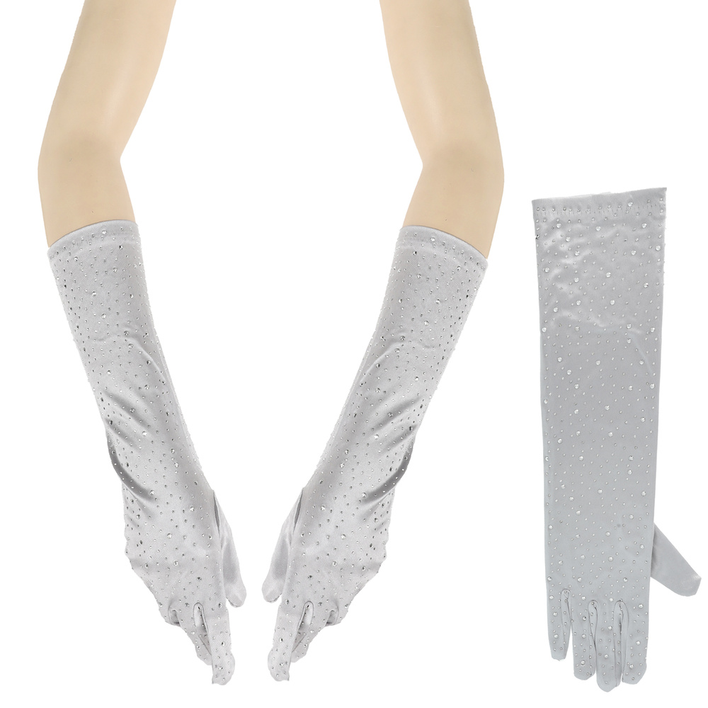 Elegant Party Rhinestone Long Satin Opera Gloves