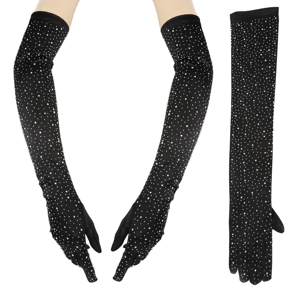 ELEGANT PARTY CRYSTAL RHINESTONE STUDDED SPARKLE SATIN LONG ELBOW LENGTH OPERA GLOVES