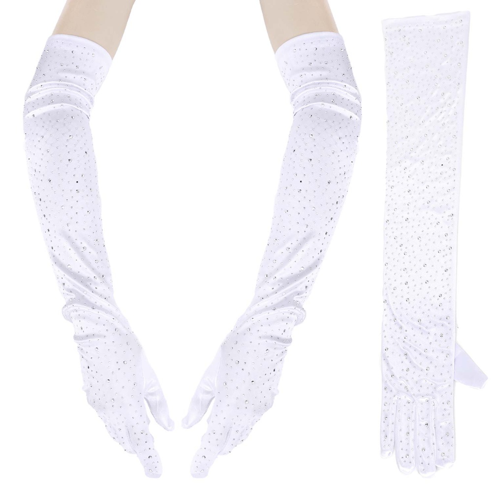 ELEGANT PARTY CRYSTAL RHINESTONE STUDDED SPARKLE SATIN LONG ELBOW LENGTH OPERA GLOVES