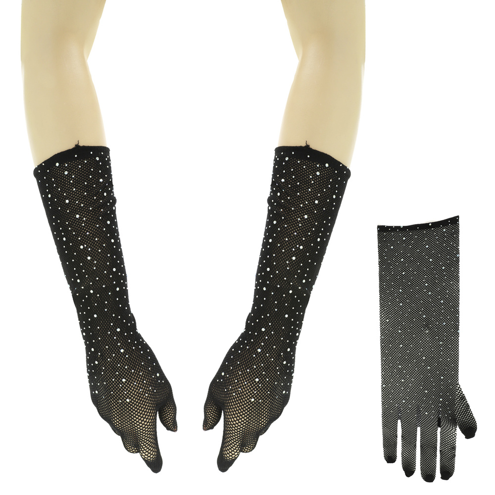 CRYSTAL RHINESTONE EMBELLISHED MESH FISHNET OPERA GLOVES