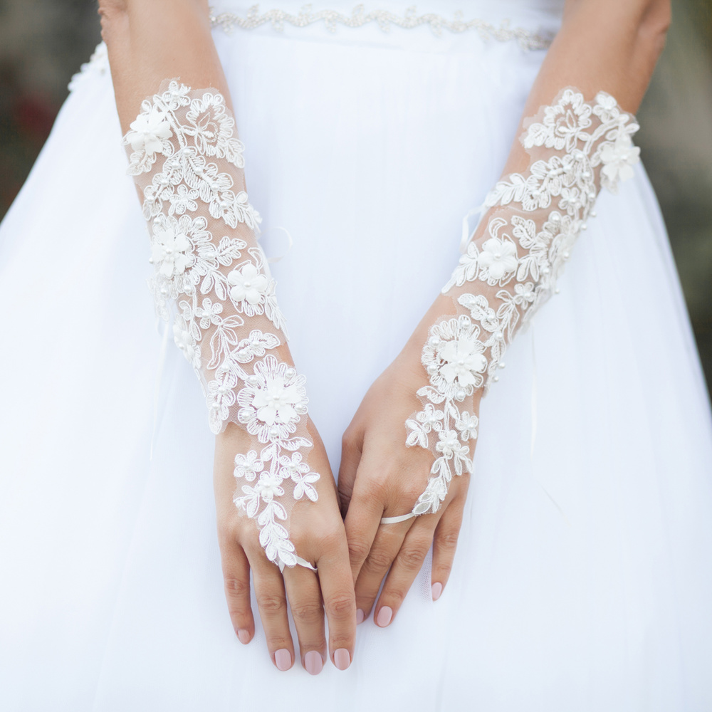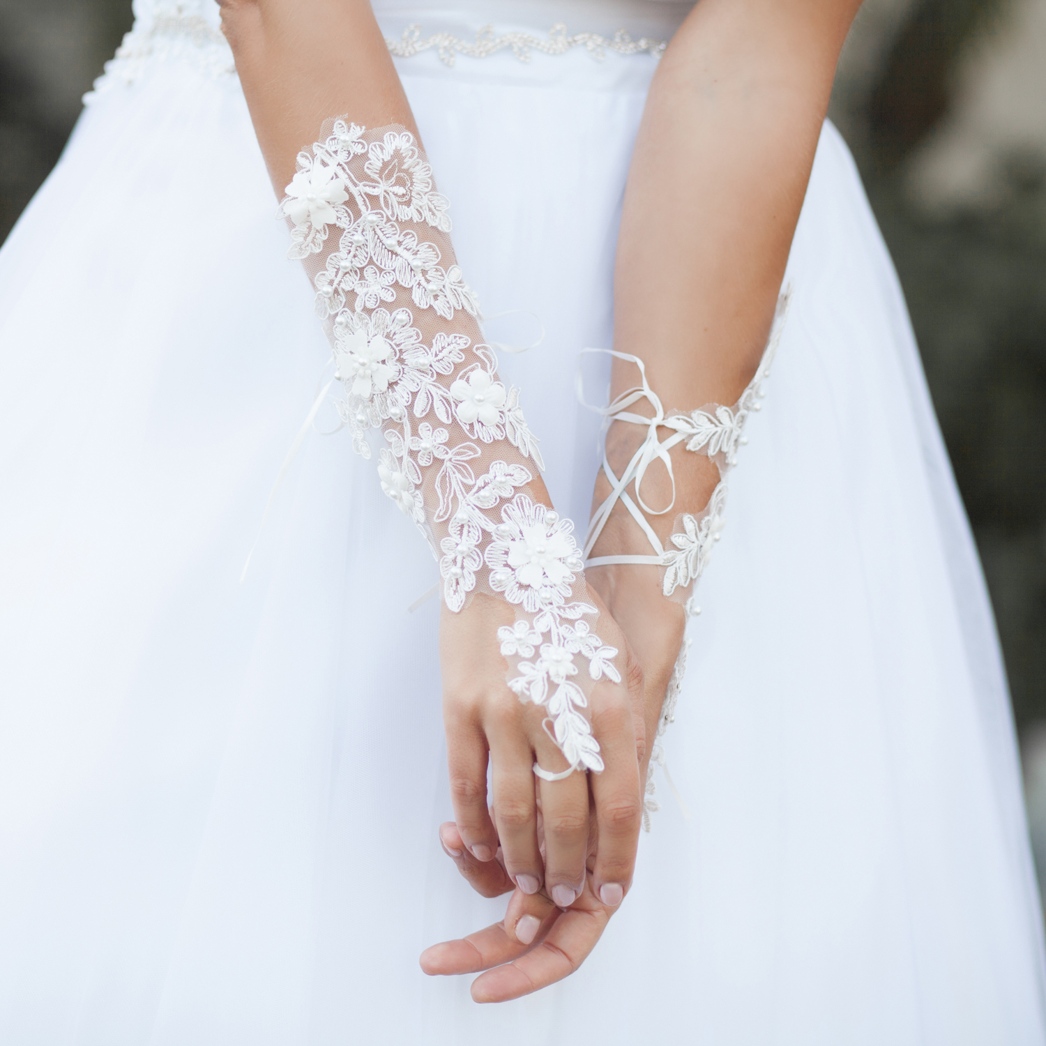 LACE UP FINGERLESS PEARL EMBELLISH WEDDING GLOVES