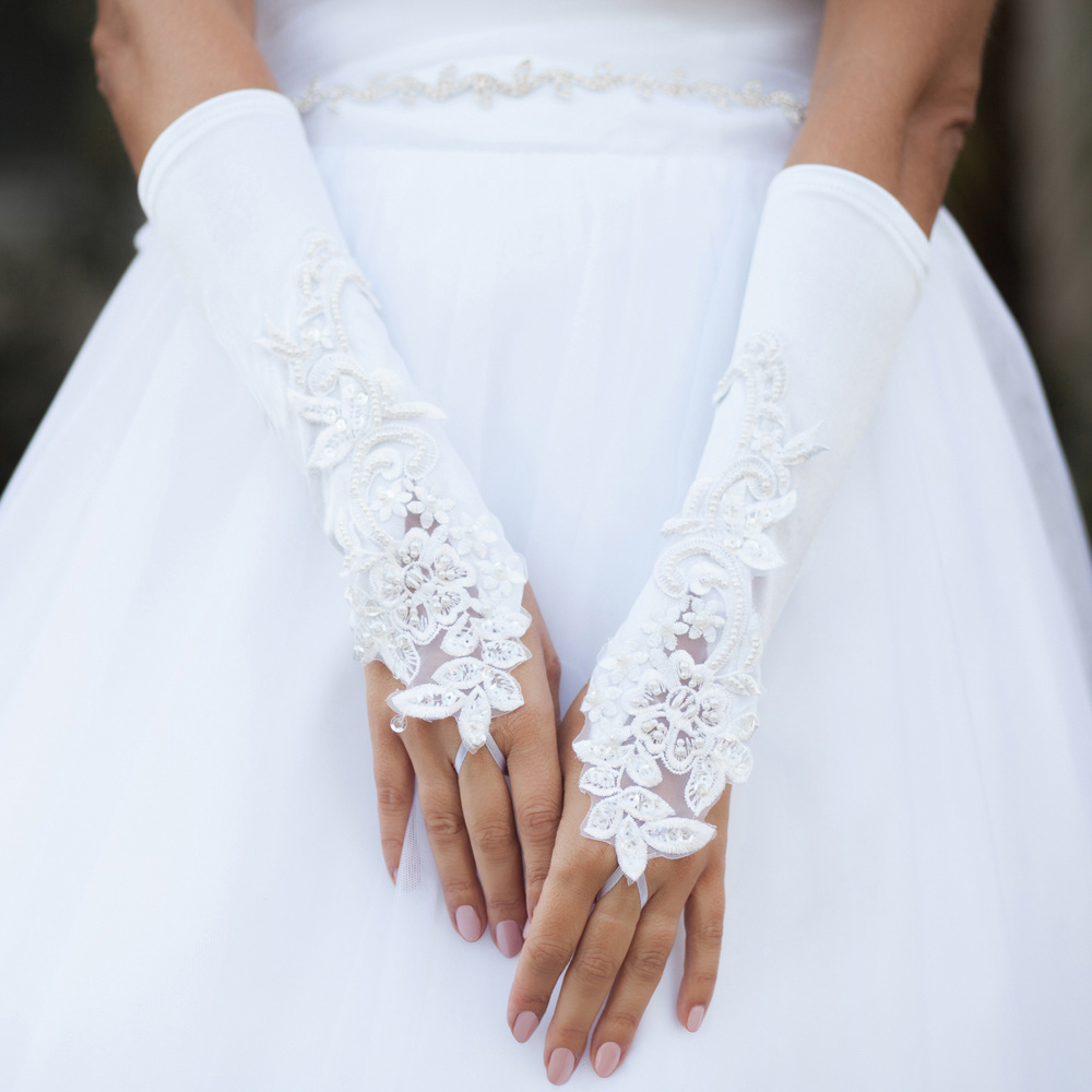 Satin Bridal Fingerless Gloves W/lace Flowers Whit