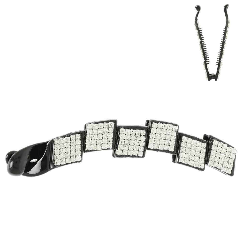 RHINESTONE PAVE SQUARE PATTERN BANANA HAIR CLIP FOR TRENDY UPDO HAIRSTYLES