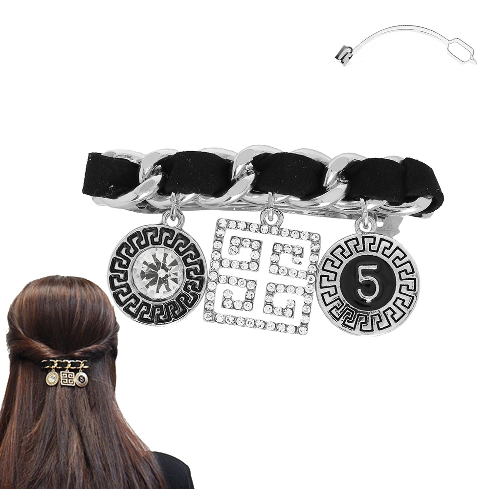 FASHIONISTA RHINESTONE EMBELLISHED ENAMEL COATED TWO-TONE DISC CHARM BARRETTE HAIR CLIP