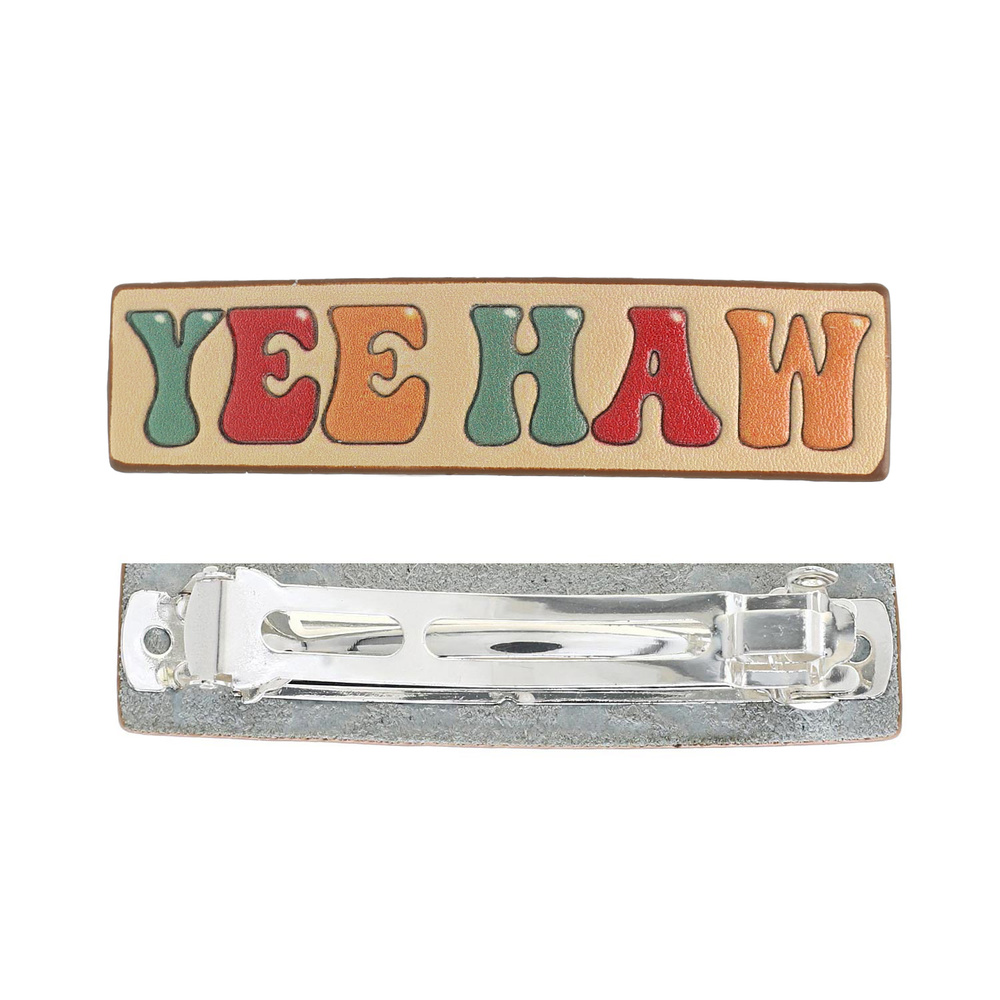 WESTERN "YEEHAW" LETTERING TOOLED LEATHER BARRETTE HAIR CLIP FOR TRENDY HAIRSTYLES