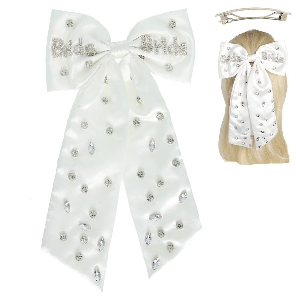 "BRIDE" RHINESTONE GEMSTONE EMBROIDERED BOW BARRETTE HAIR CLIP