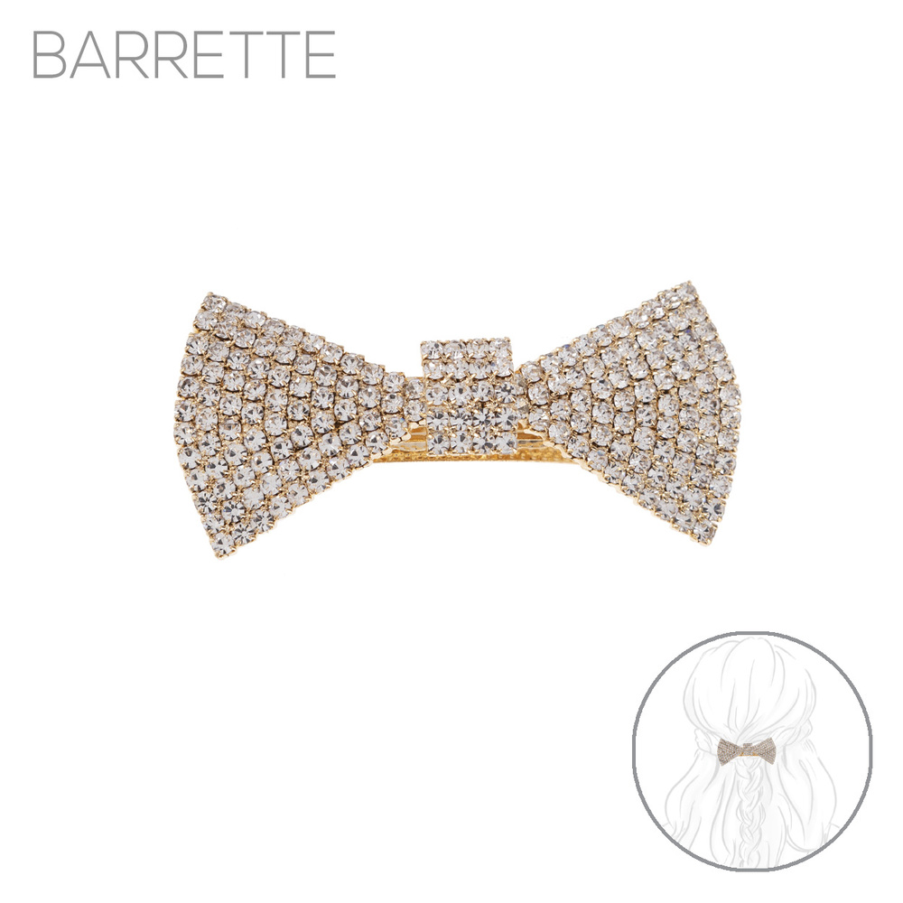 RHINESTONE PAVE BOW TIE BARRETTE HAIR CLIP IN GOLD-TONE METAL