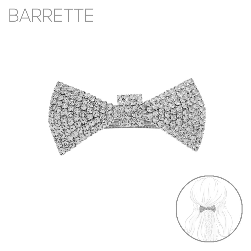 RHINESTONE PAVE BOW TIE BARRETTE HAIR CLIP IN SILVER-TONE METAL