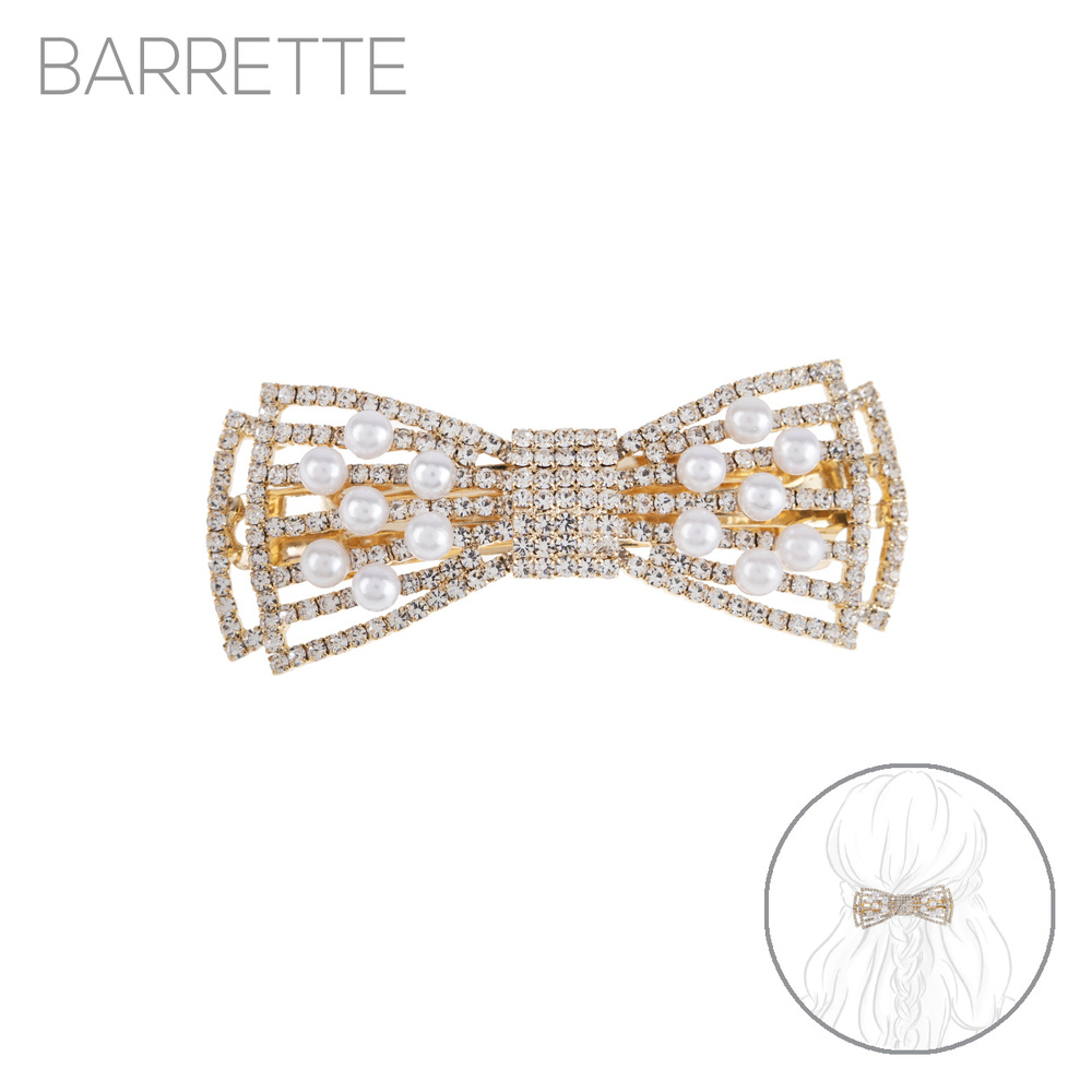 PEARL RHINESTONE EMBELLISHED BOW TIE BARRETTE HAIR CLIP IN GOLD-TONE METAL