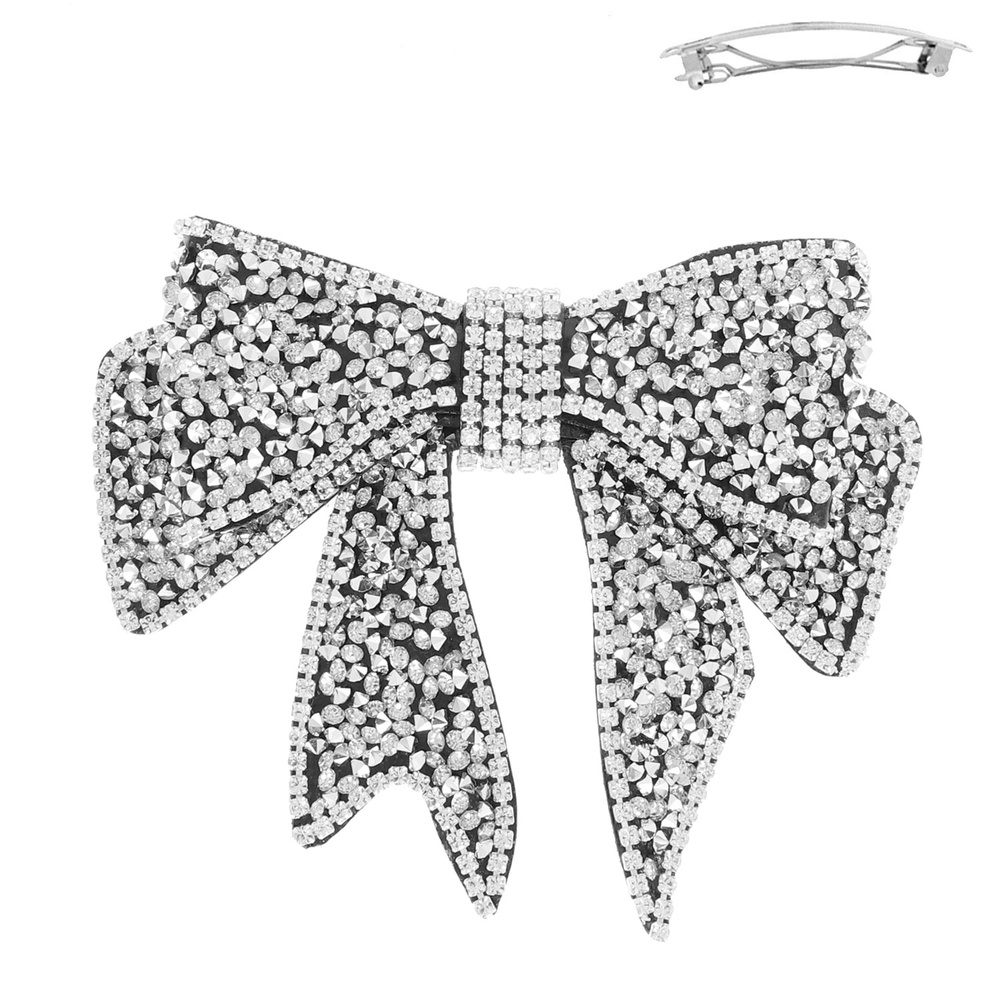 CRYSTAL STUDDED BOW RIBBON BARRETTE HAIR CLIP WITH BARREL KNOT ACCENT