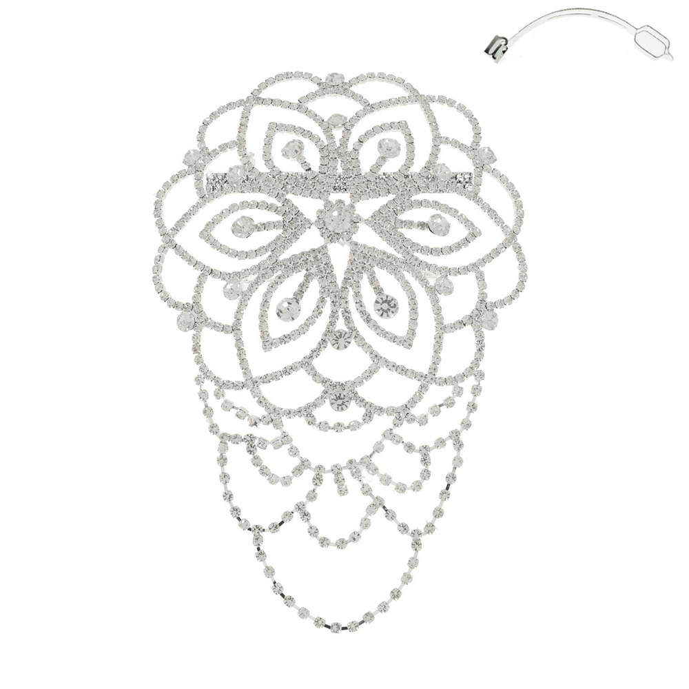 Floral Bridal Crystal Rhinestone Pave Dangle Barrette Hair Clip