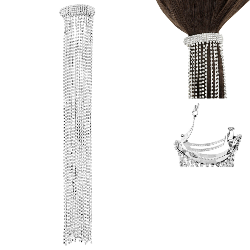 RHINESTONE PONYTAIL LONG TASSEL HAIR BARRETTE CLIP