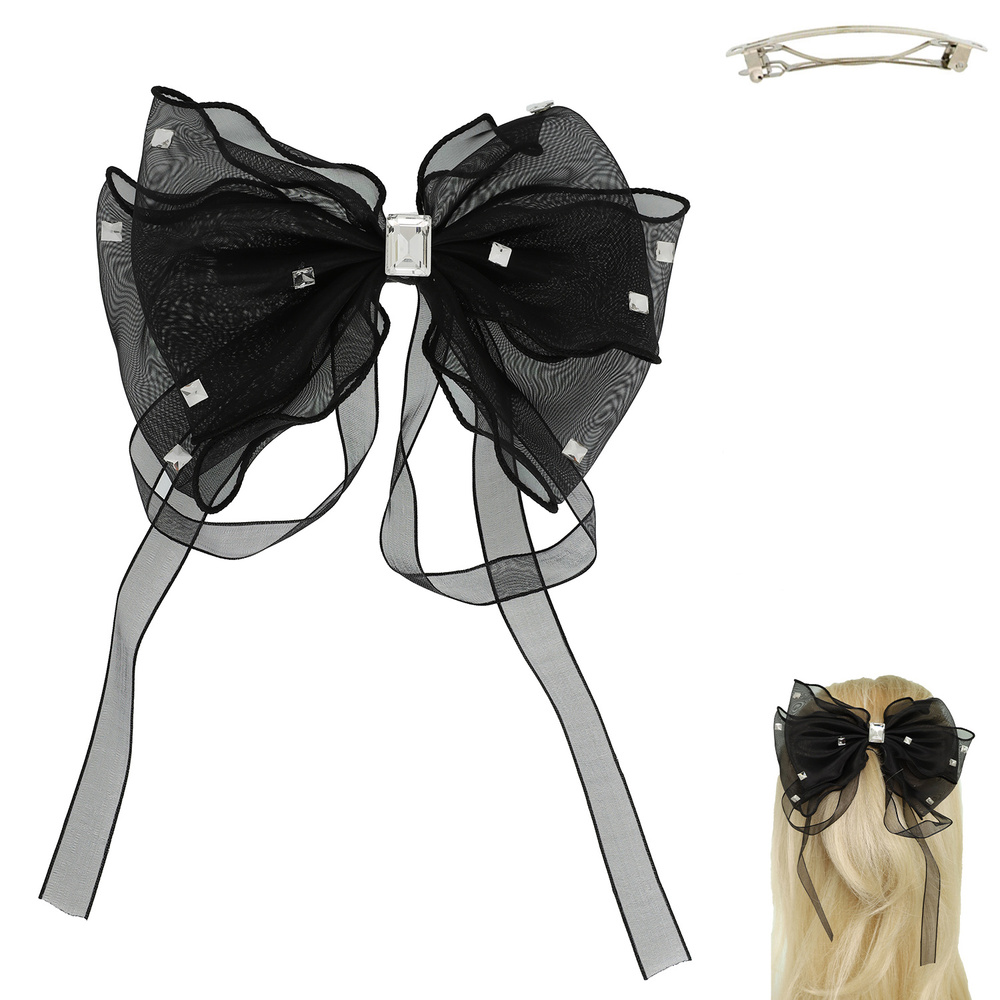 OVERSIZED DECOR GEMSTONE STUDDED SHEER BOW BARRETTE HAIR CLIP