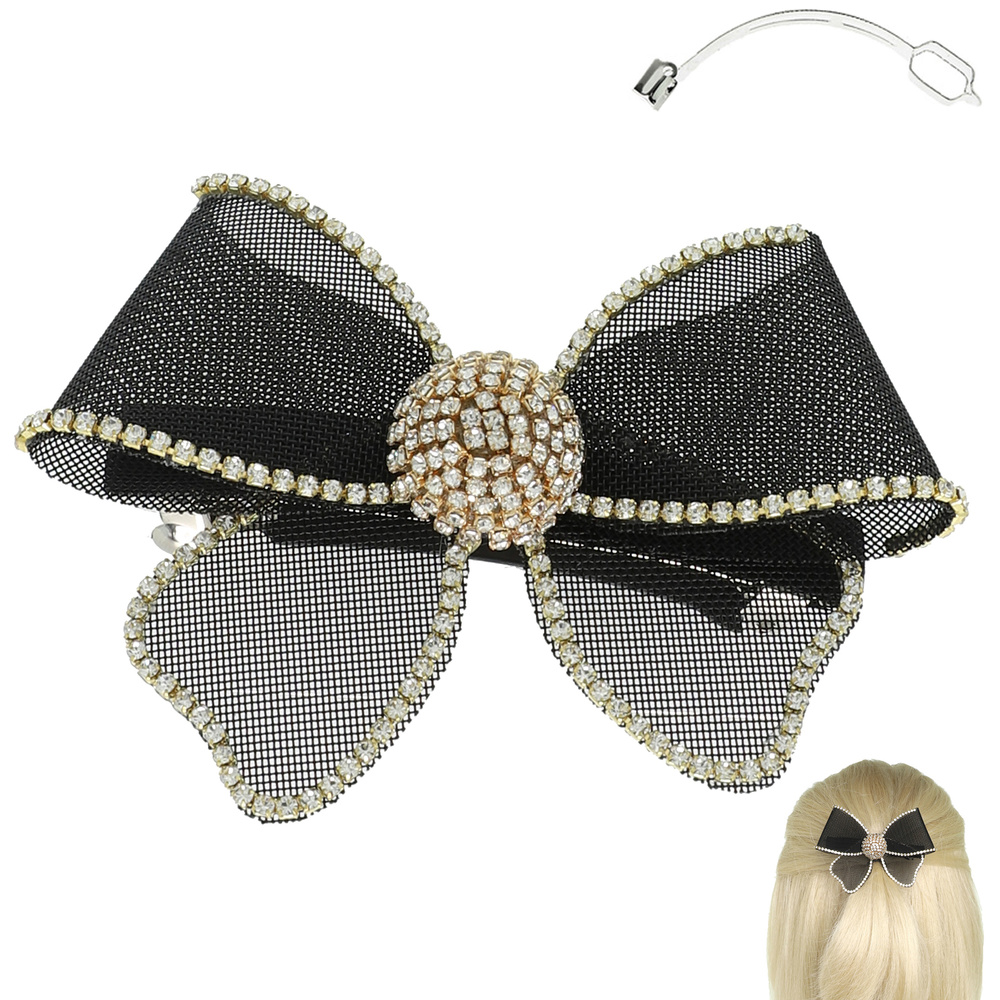 PAVE SPHERE CRYSTAL RHINESTONE TRIM MESH BOW BARRETTE HAIR CLIP