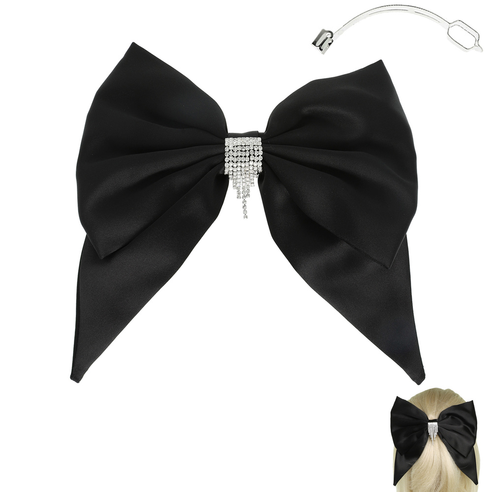 Crystal Rhinestone Tassel Satin Bow Barrette Clip