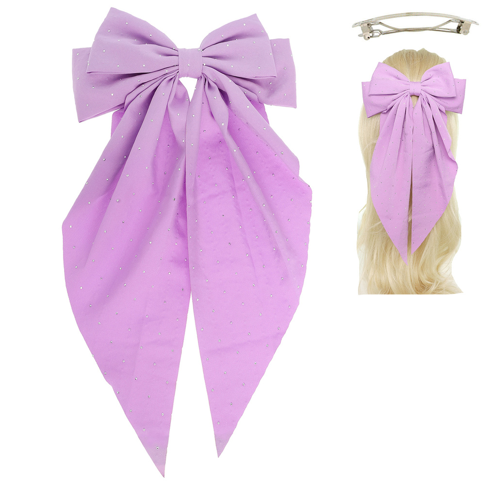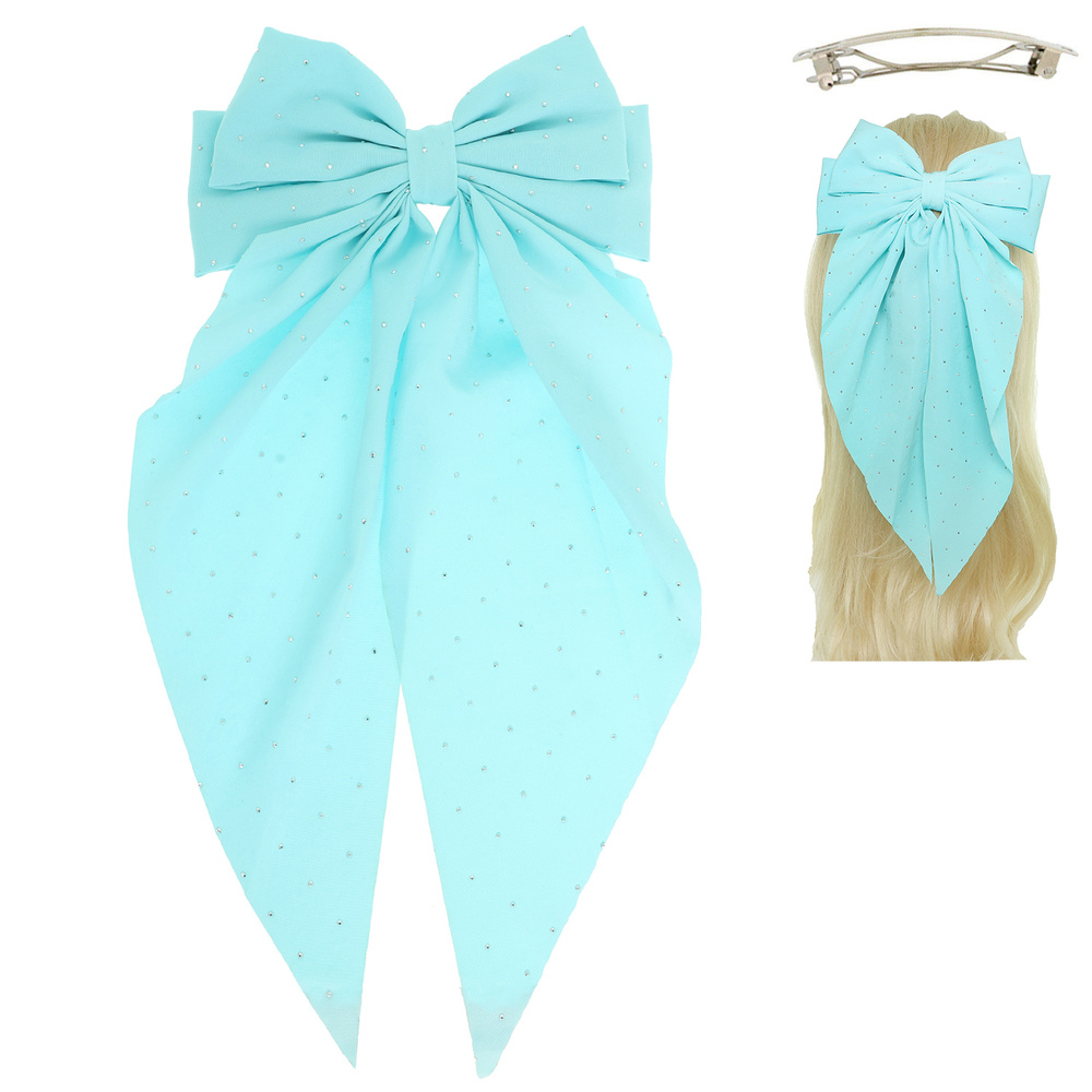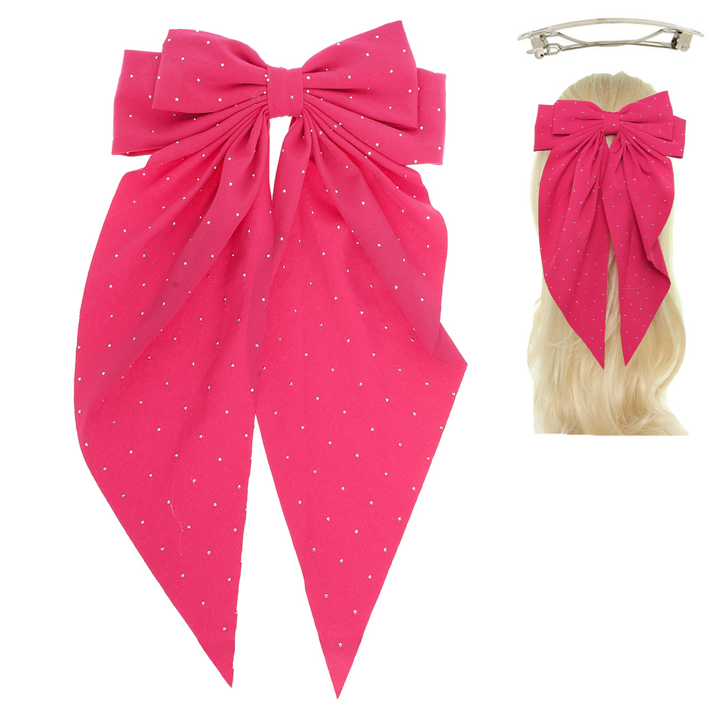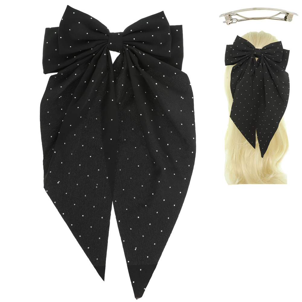RHINESTONE EMBELLISHED MONOCHROMATIC BOW BARRETTE HAIR CLIP