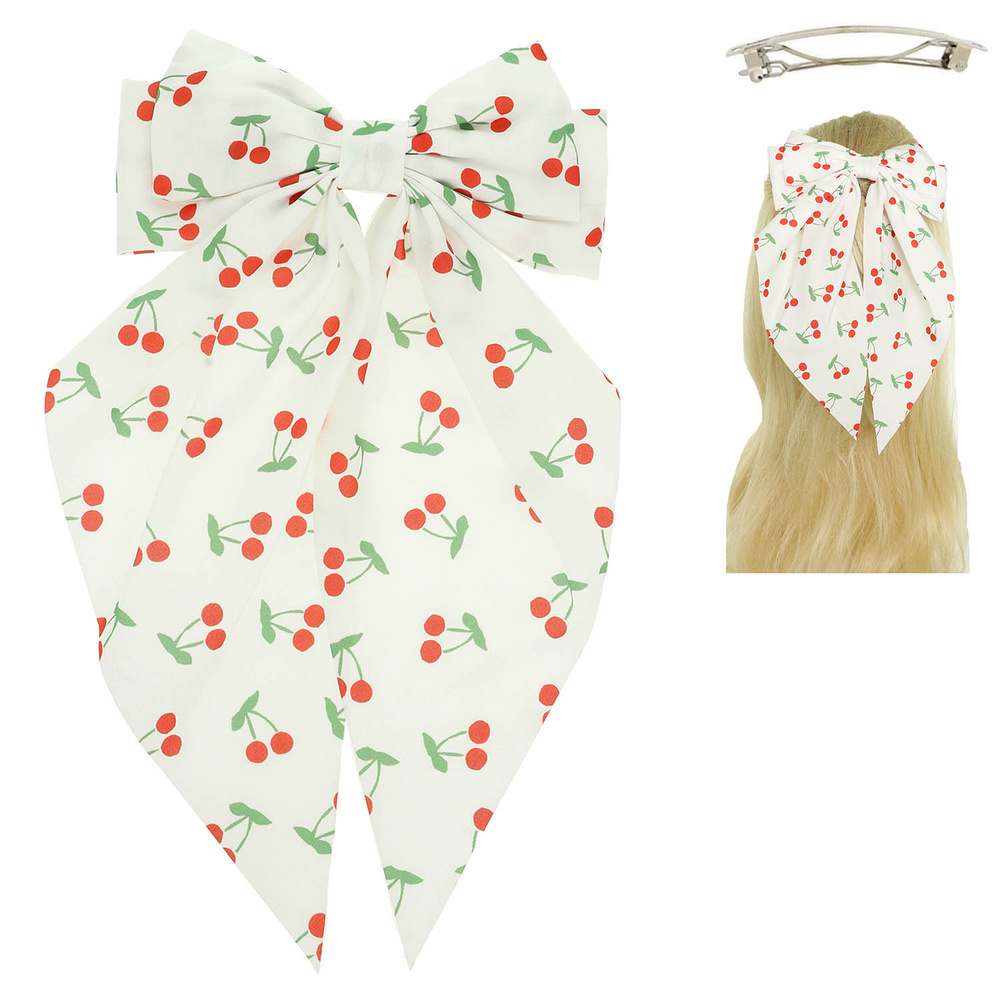 ANEMONE FLOWER CHERRY PATTERN GRAPHIC PRINT BOW BARRETTE HAIR CLIP IN PINK FABRIC