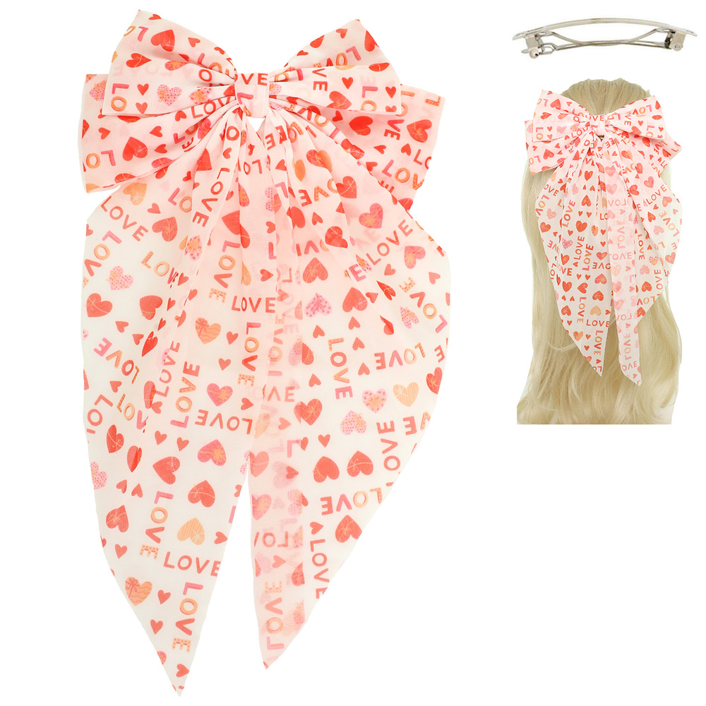 VALENTINE'S HEARTS AND "LOVE" GRAPHIC PATTERN PRINT BOW BARRETTE HAIR CLIP