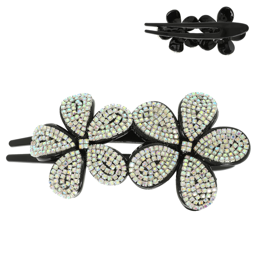 Floral Rhinestone Pave Barrette Hair Clip