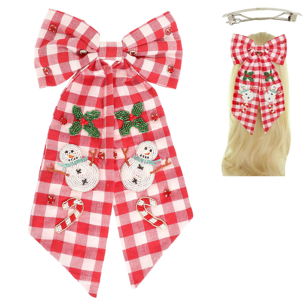 CHRISTMAS NUTCRACKER CRYSTAL SEED BEADED TOP KNOTTED HEADBAND WITH CANDY CANE CHECKER STYLE DESIGN