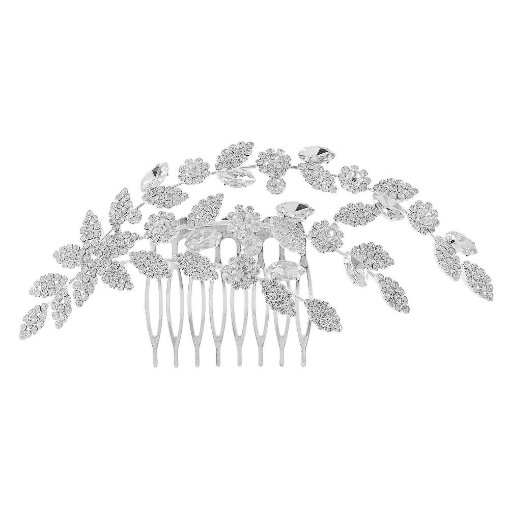 FLOWER & LEAF RHINESTONE W/ PEARL HAIR COMB