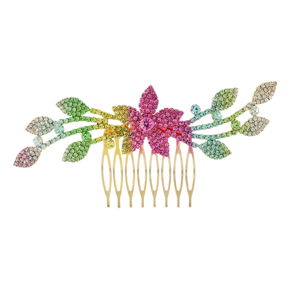 FLOWER & LEAF RHINESTONE HAIR COMB