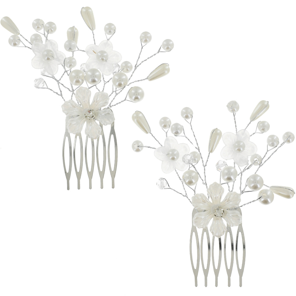 2-PIECE SET CRYSTAL AND PEARL FLORAL SIDE COMBS
