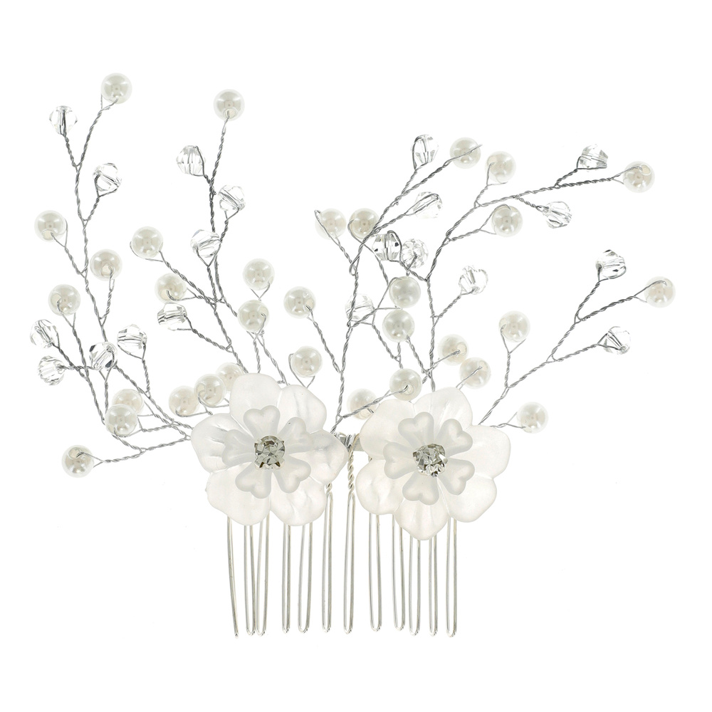CRYSTAL AND PEARL FLORAL SIDE COMB