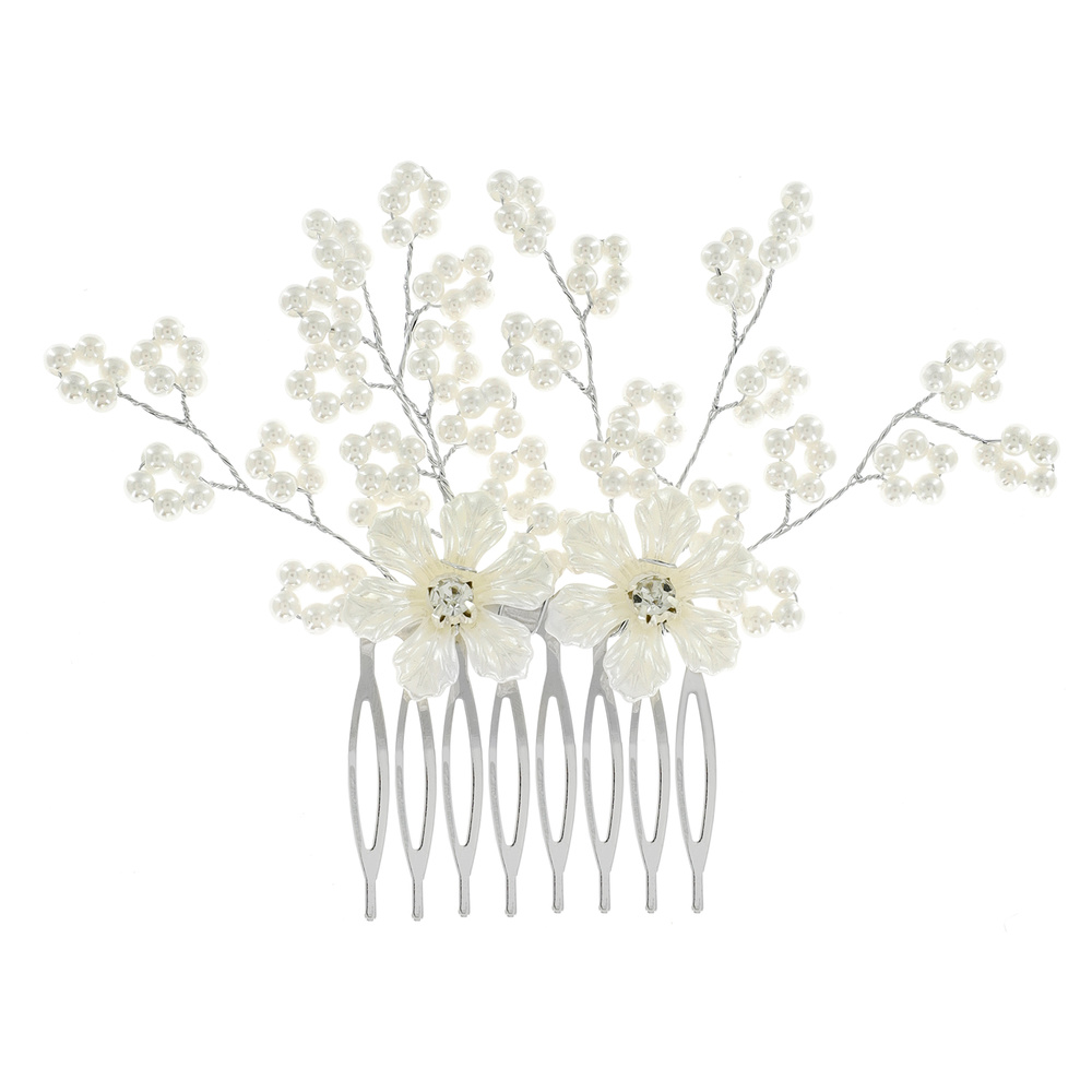 CRYSTAL AND PEARL FLORAL SIDE COMB