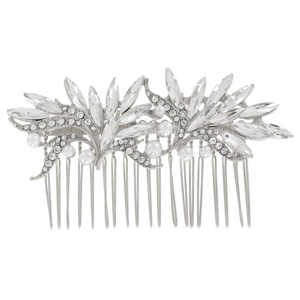 FLORAL/VINE-CRYSTAL AND SIMULATED PEARL BRIDAL HAIR COMB