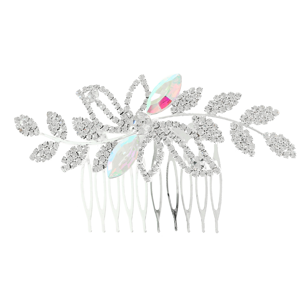 CRYSTAL RHINESTONE EMBELLISHED FLORAL VINE BRIDAL UPDO HAIR COMB