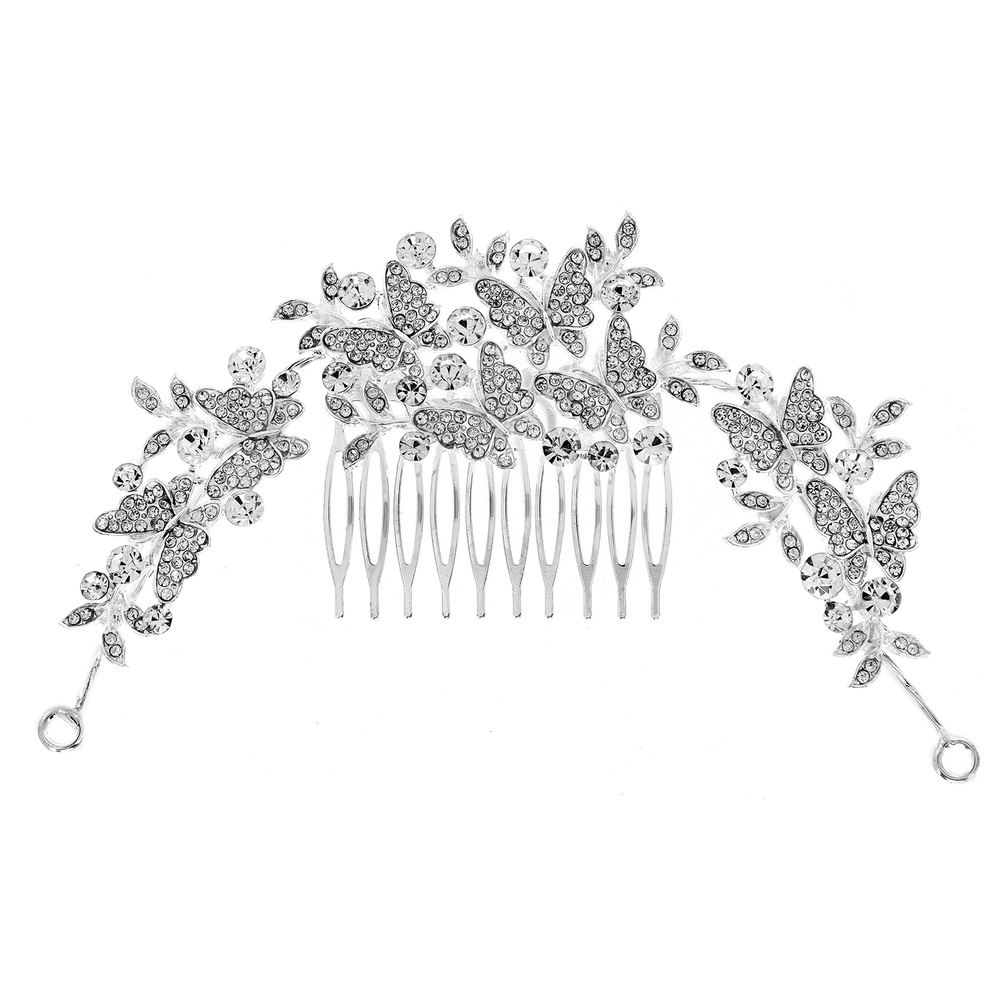 Bridal Crystal Rhinestone Butterfly And Floral Hair Comb In Silver Tone