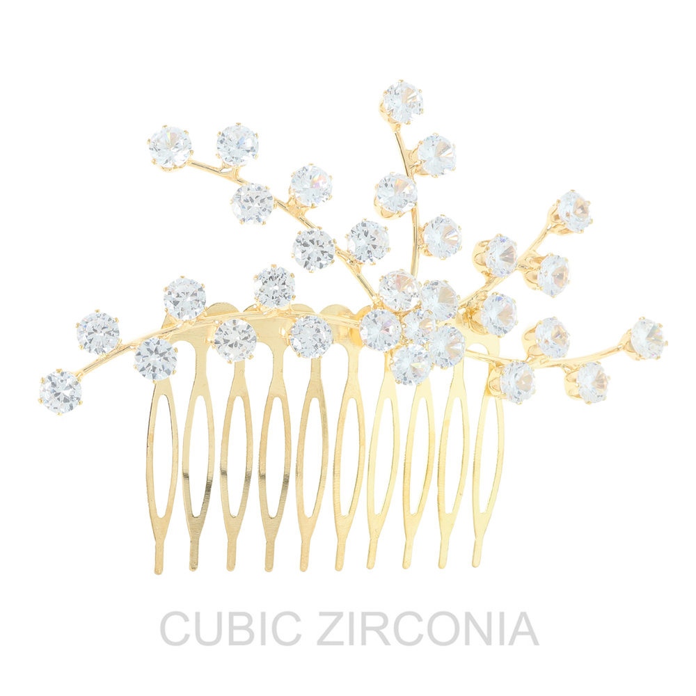 CUBIC ZIRCONIA EMBELLISHED FLORAL FOLIAGE BRIDAL UPDO HAIR COMB PIN
