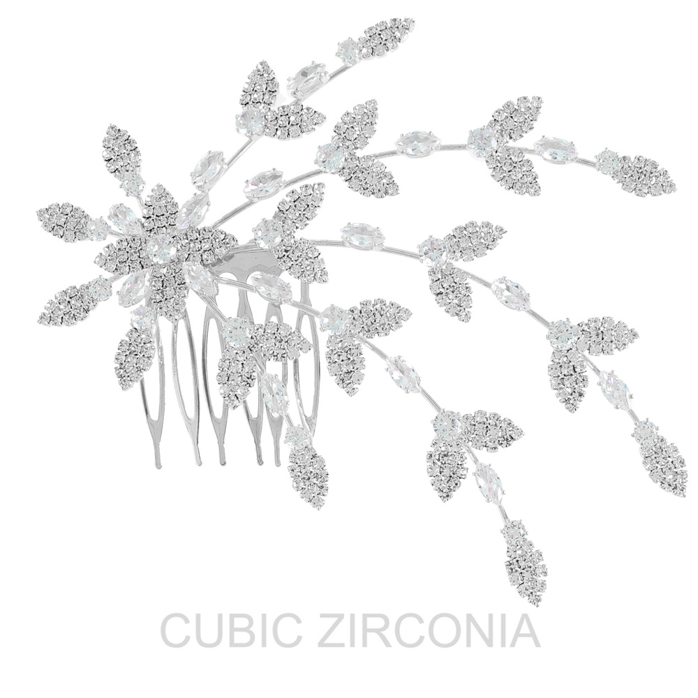 CRYSTAL RHINESTONE EMBELLISHED FLORAL VINE BRIDAL UPDO HAIR COMB