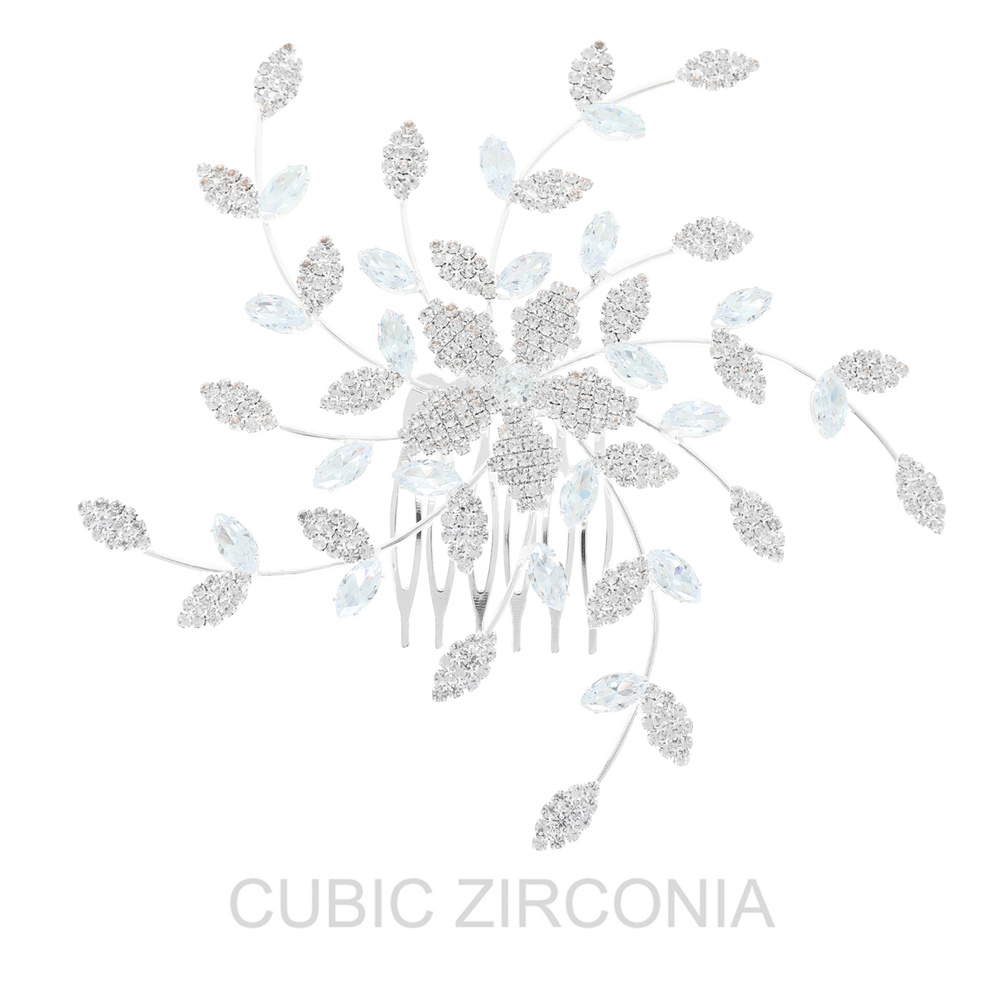 CUBIC ZIRCONIA EMBELLISHED FLORAL FOLIAGE BRIDAL UPDO HAIR COMB PIN