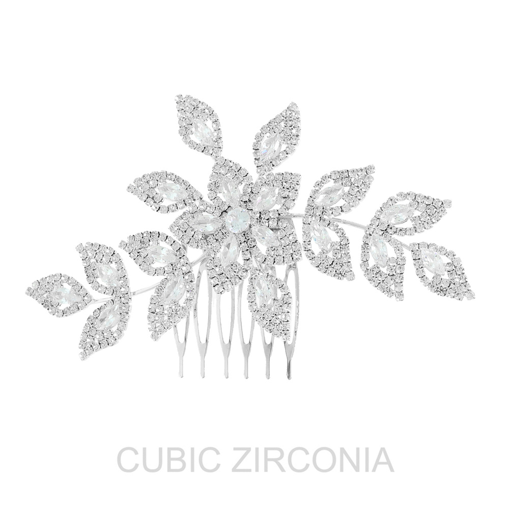 CRYSTAL RHINESTONE EMBELLISHED FLORAL VINE BRIDAL UPDO HAIR COMB