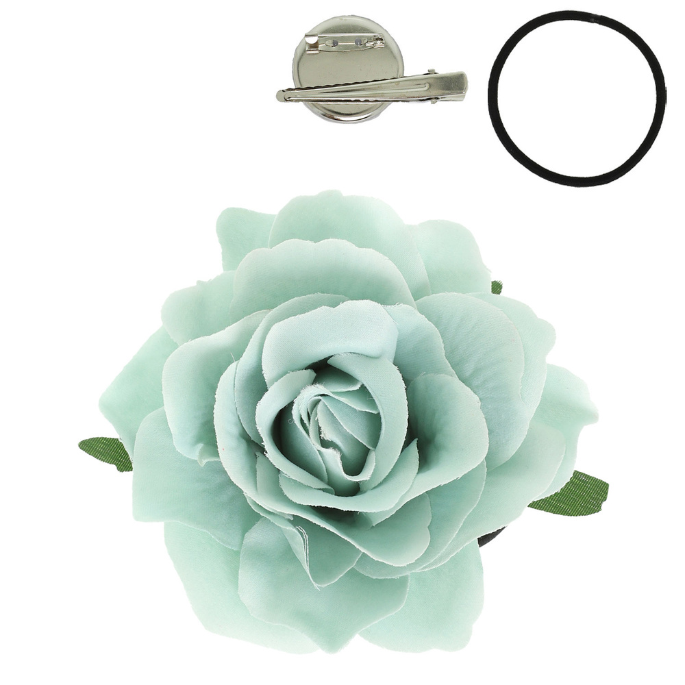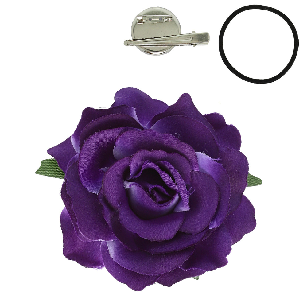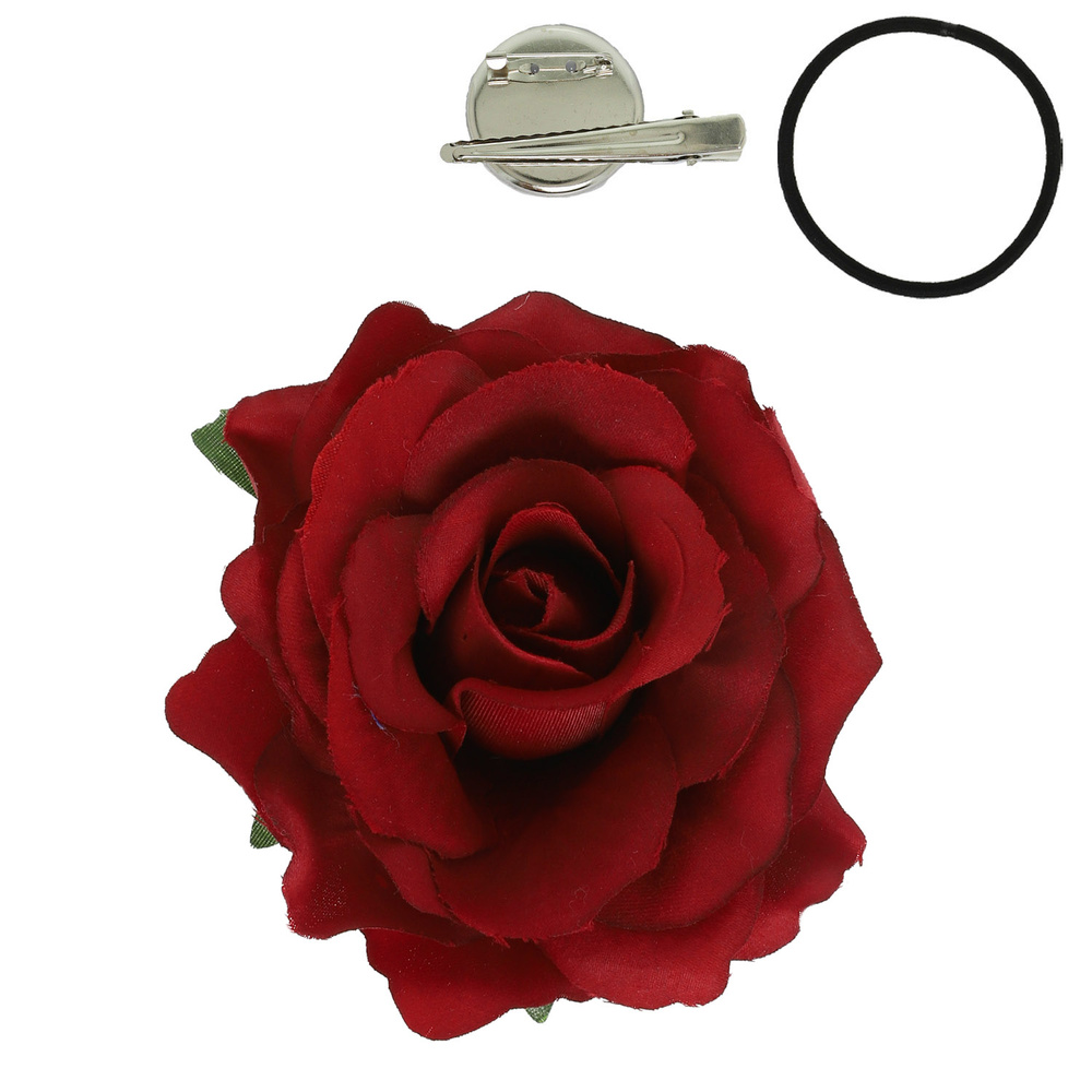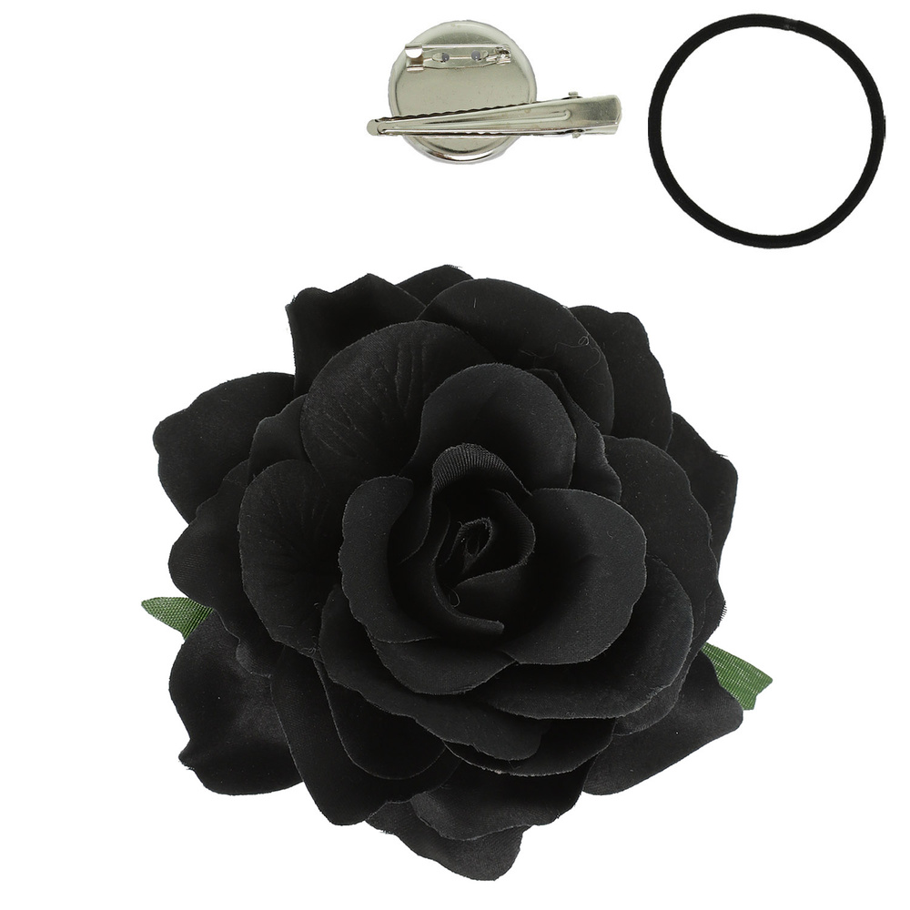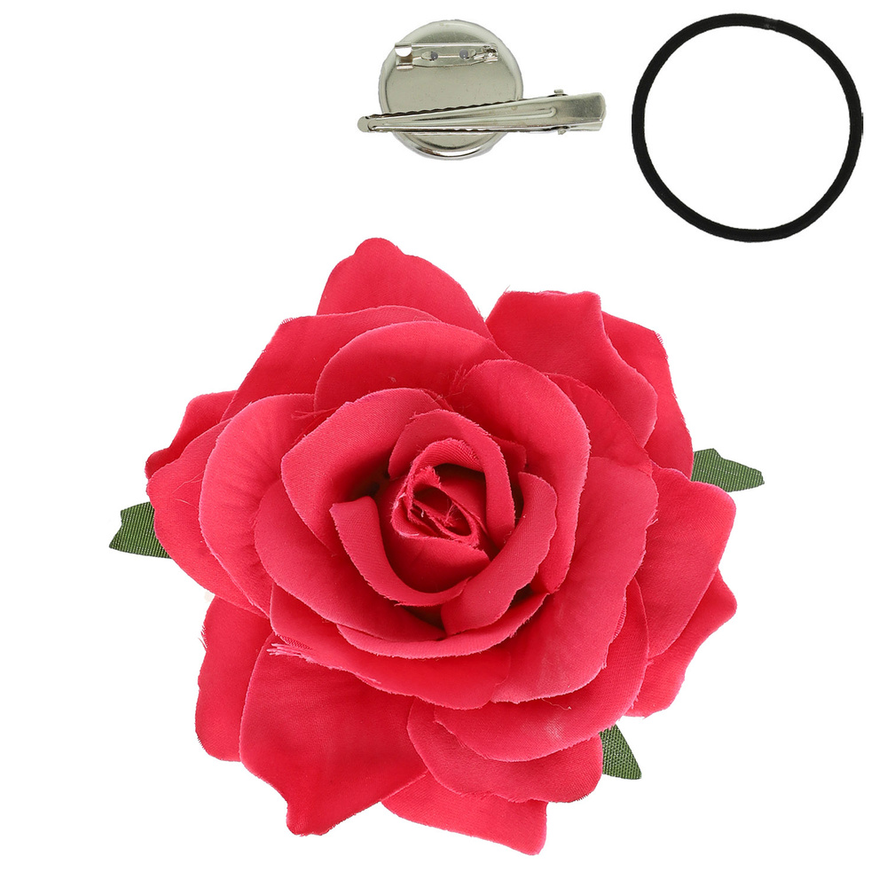 2-IN-1 ROSE FLOWER BROOCH PIN AND HAIR CLIP WITH SEPARATE HAIR TIE