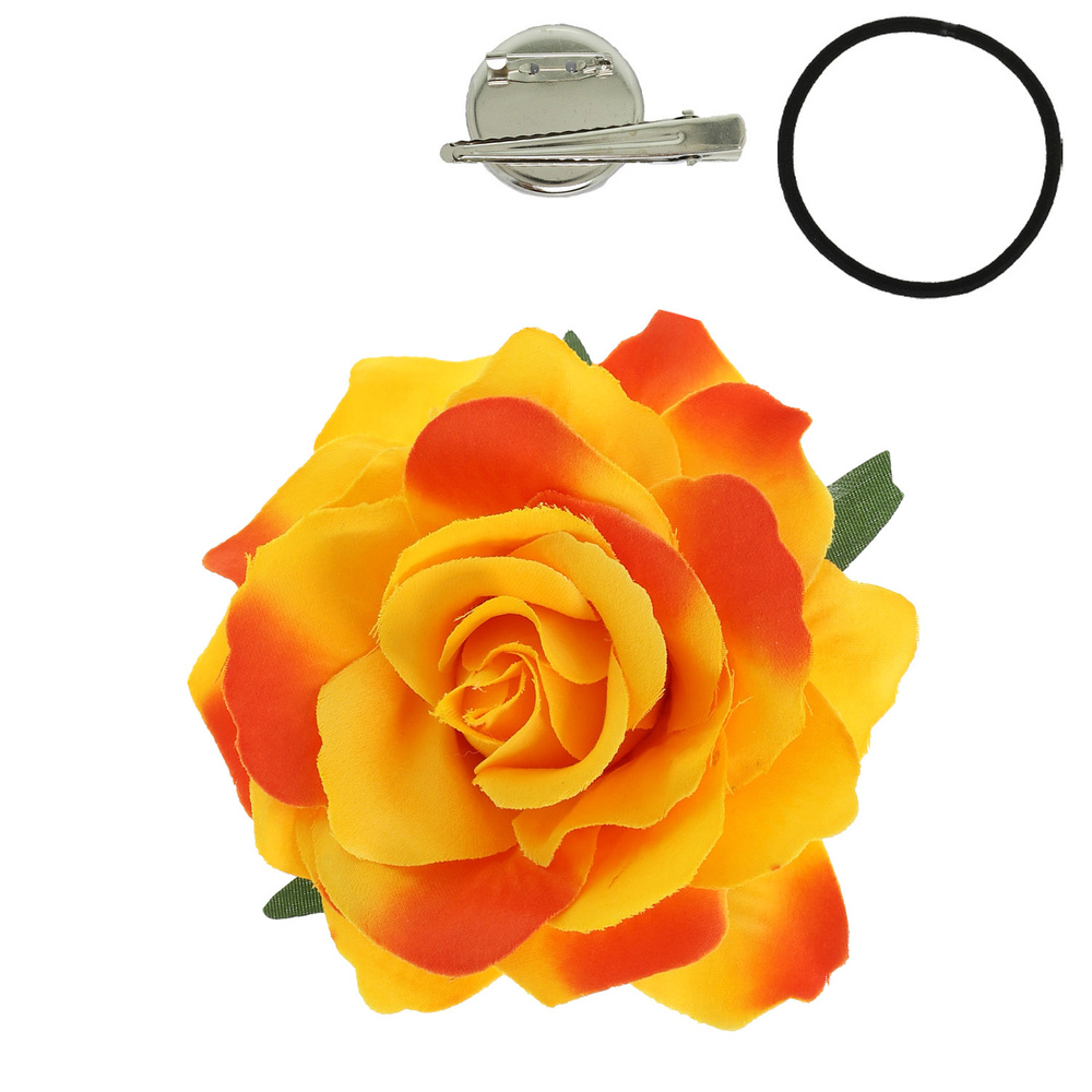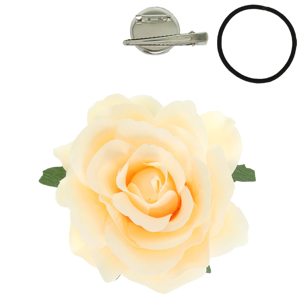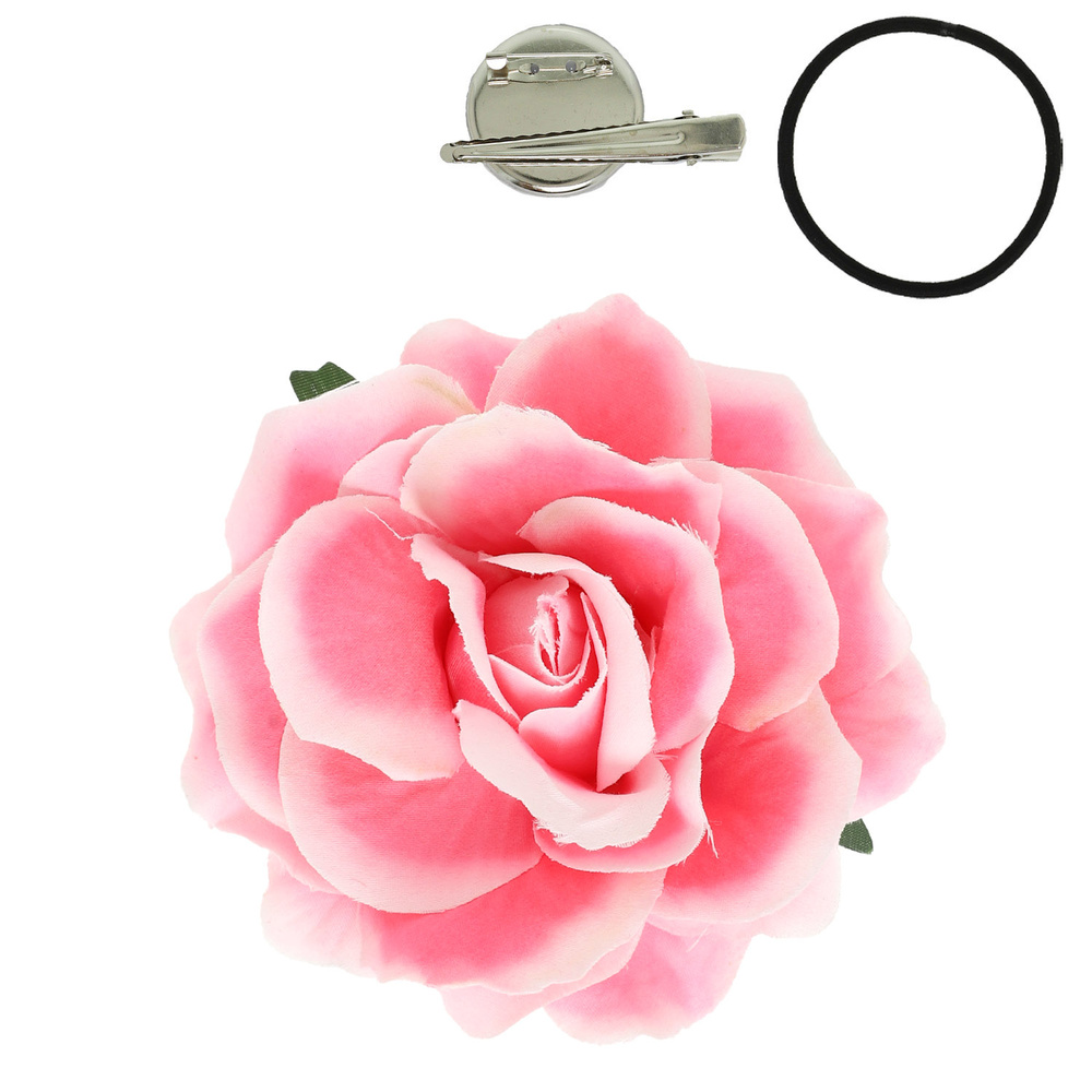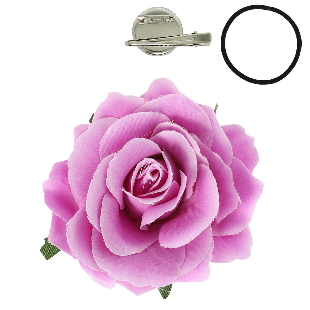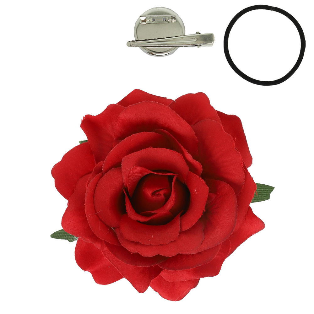 2-IN-1 ROSE FLOWER BROOCH PIN AND HAIR CLIP WITH SEPARATE HAIR TIE