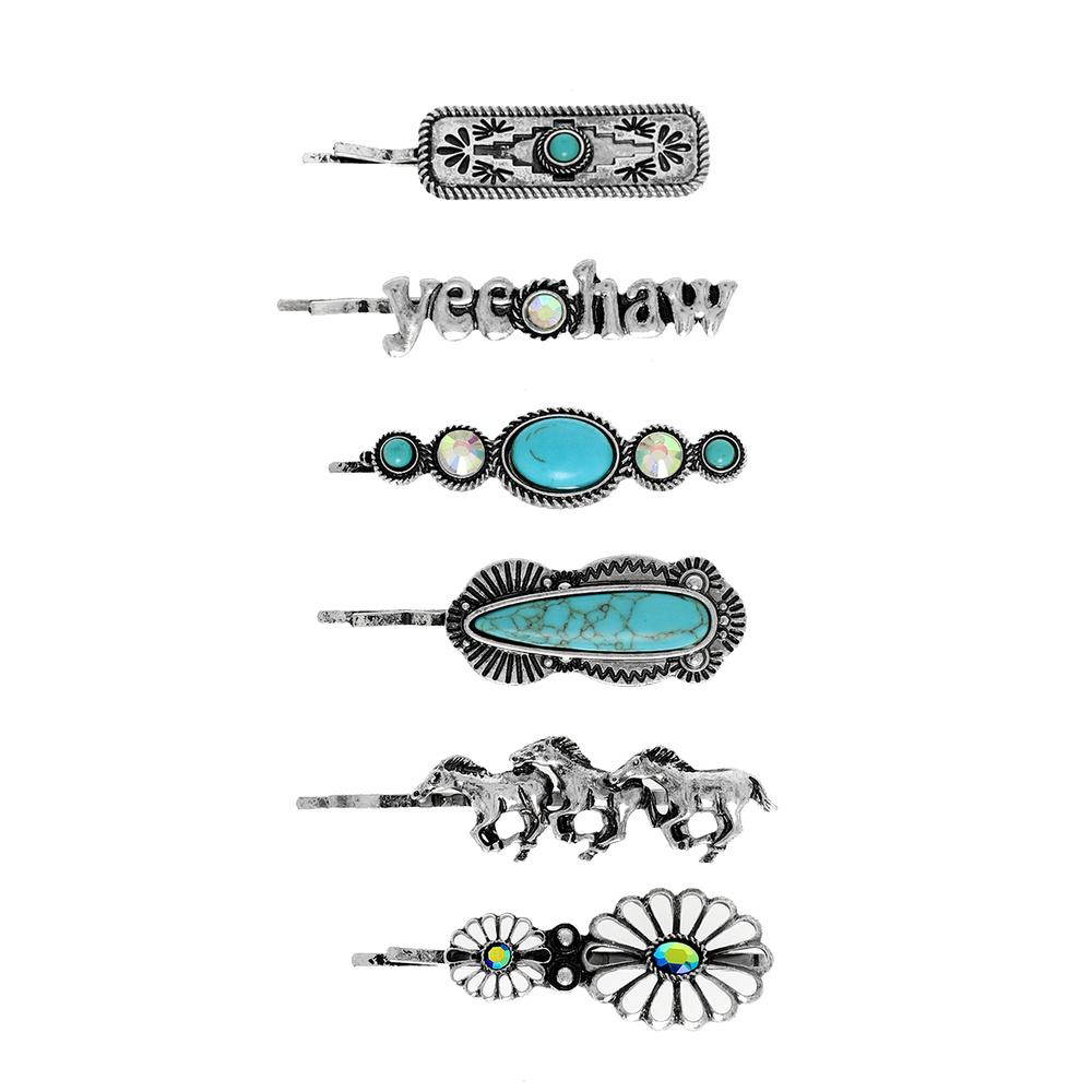 6-PIECE WESTERN INSPIRED ASSORTED TURQUOISE CRYSTAL HAIR PIN SET