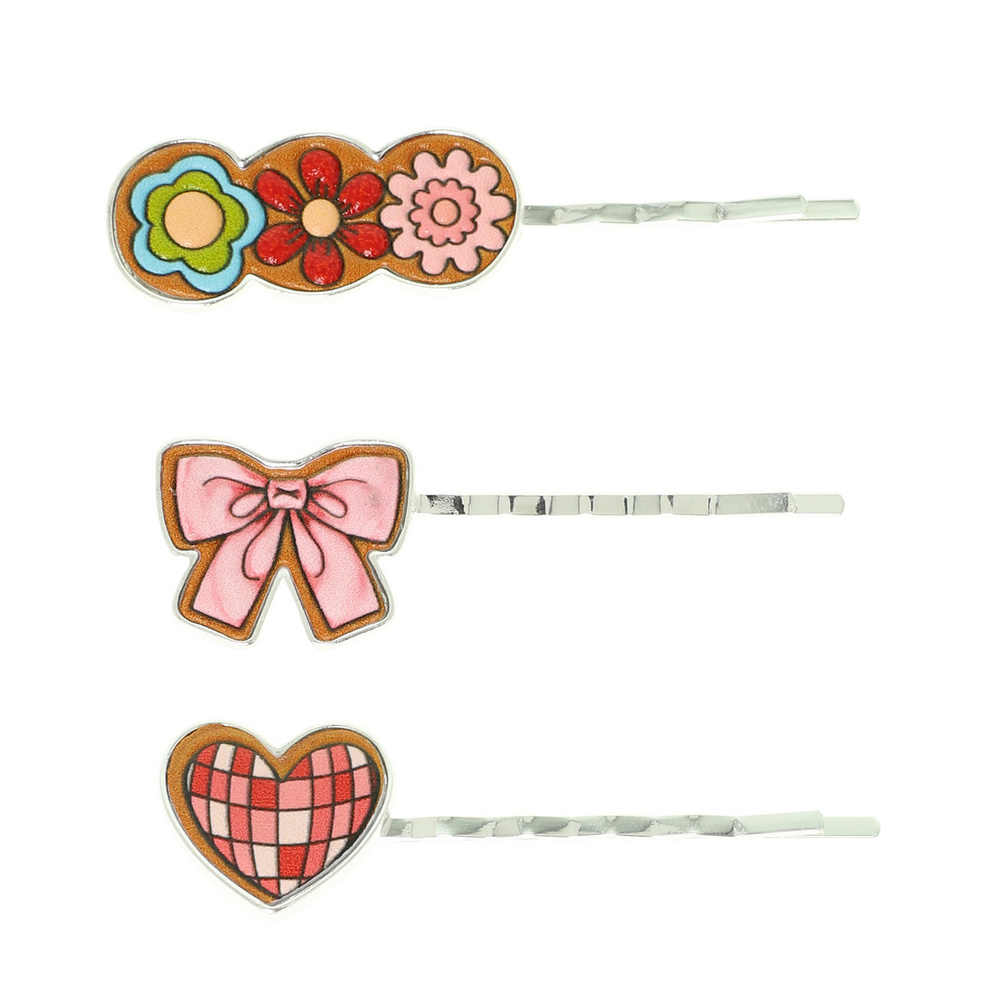 WESTERN THEME 3-PIECE ASSORTED TOOLED DECORATIVE LEATHER HAIR PIN SET