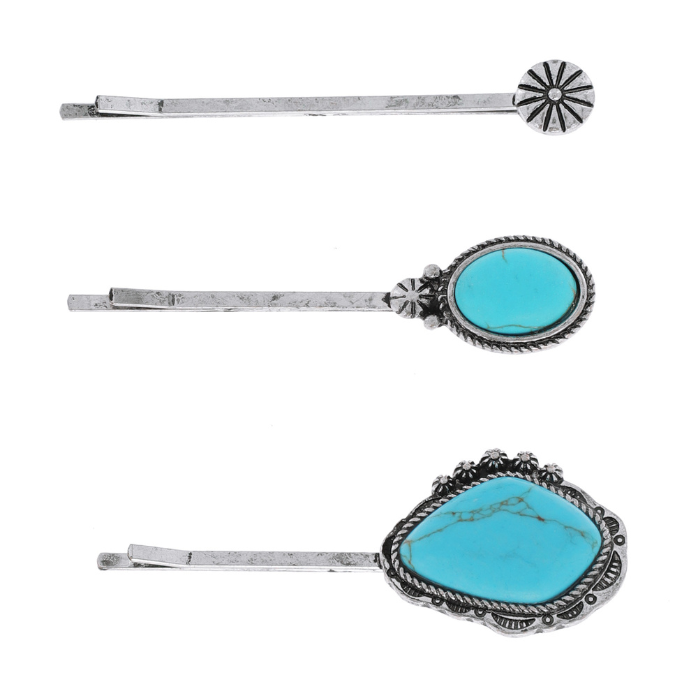 3-piece Assorted Set Decorative Western Turquoise Semi Stone Bobby Pin Hair Pin