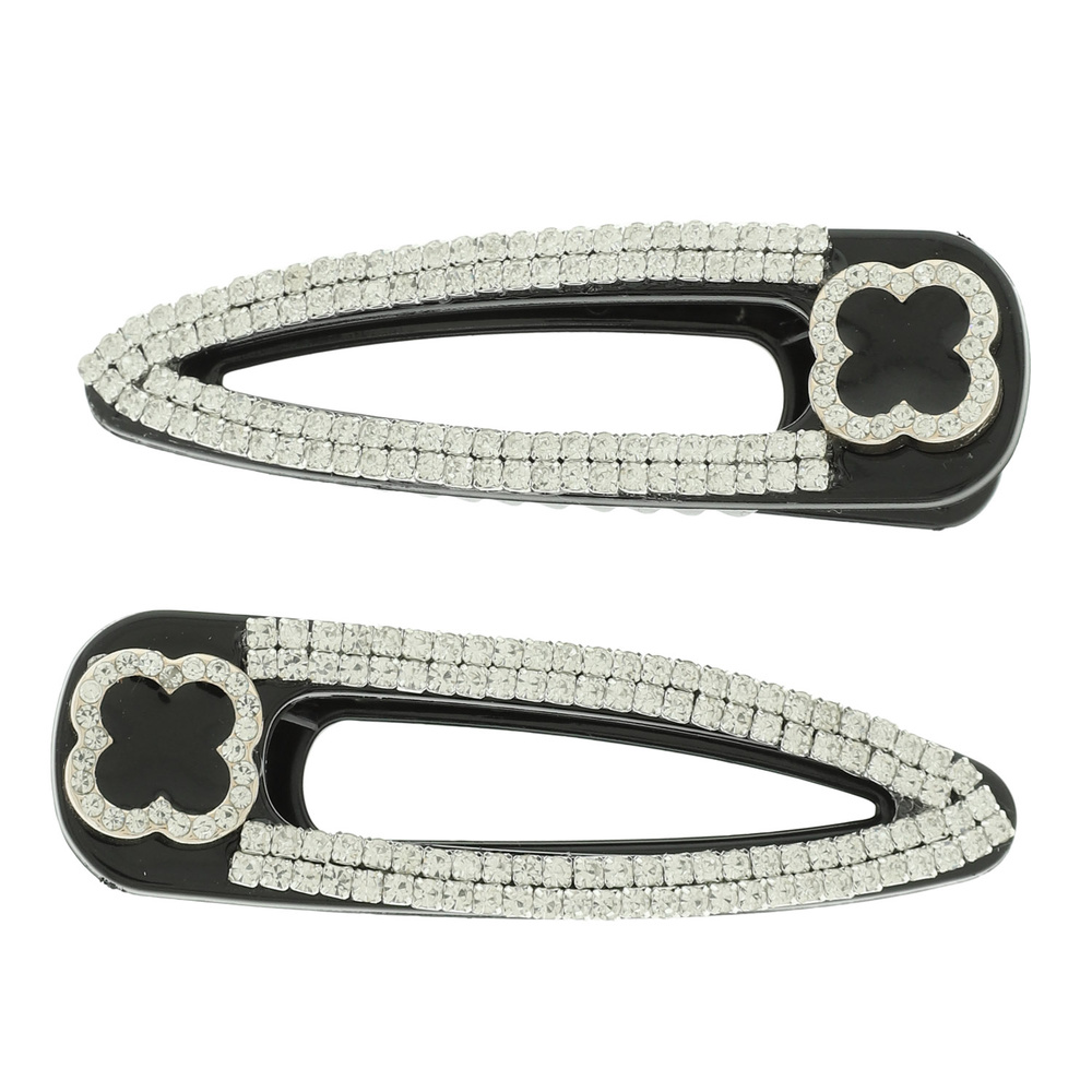 2pc Rhinestone Pave Quatrefoil Hair Clip Set