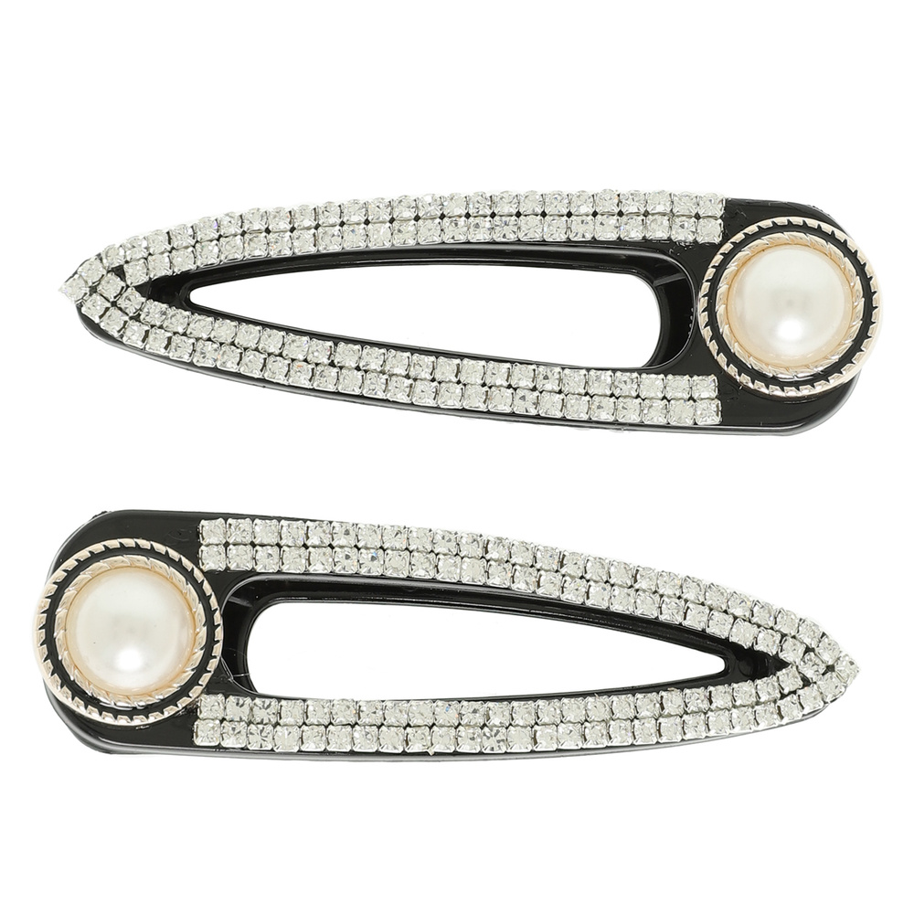 2pc Rhinestone Pave Pearl Hair Clip Set