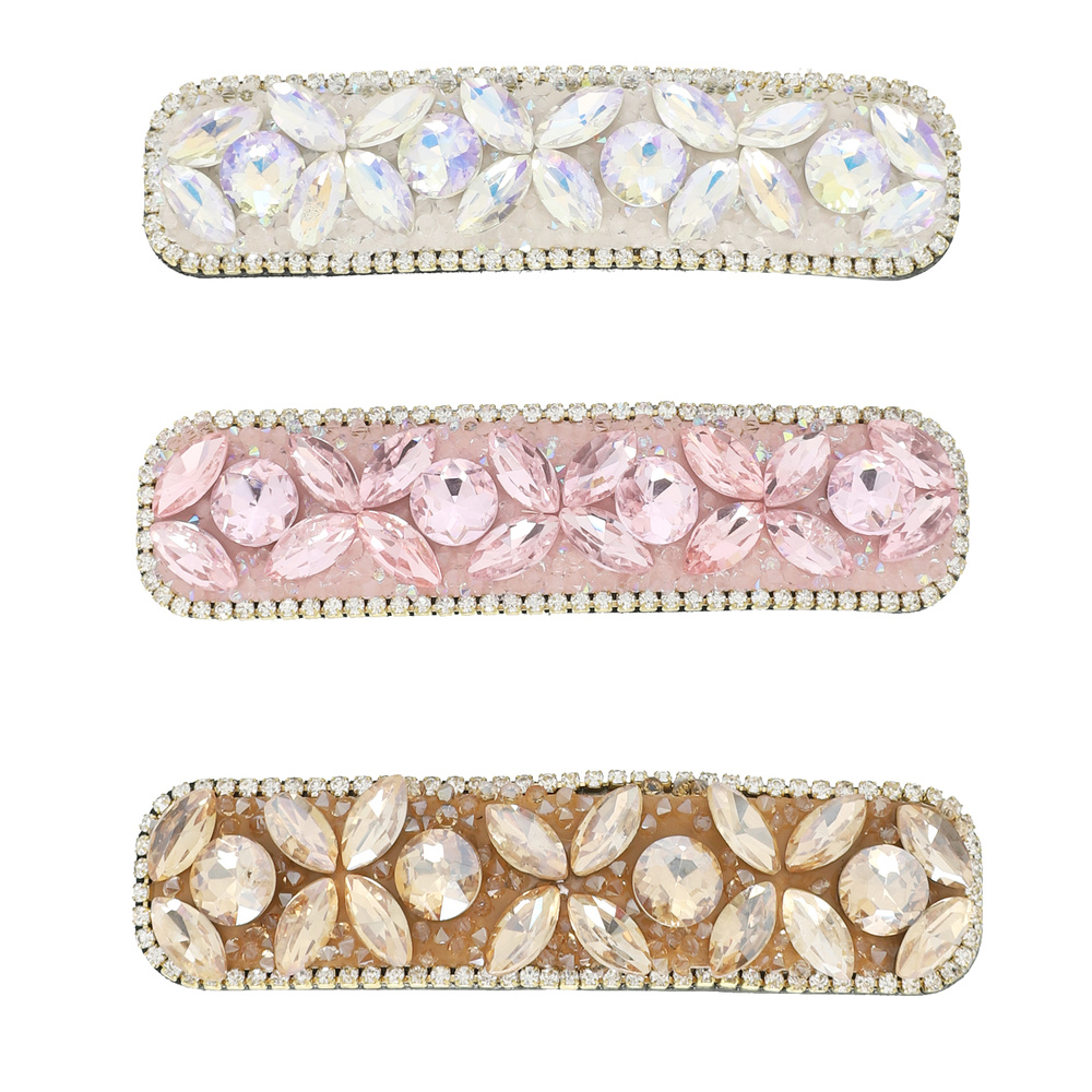 3-PACK ASSORTED CRYSTAL GEMSTONE CLUSTER SNAP HAIR CLIP SET